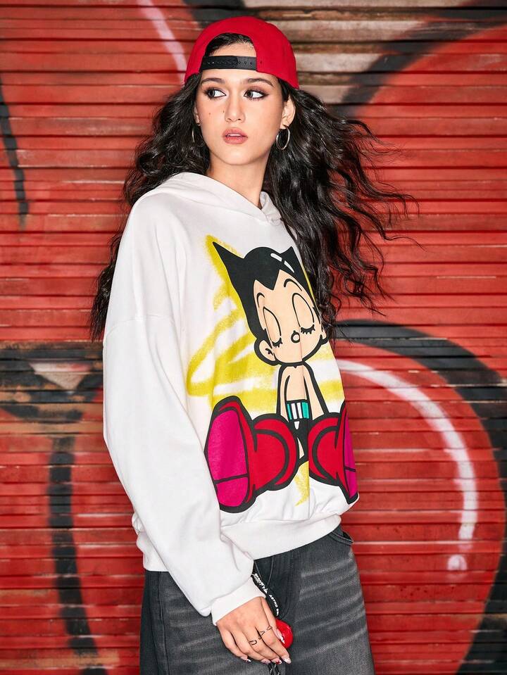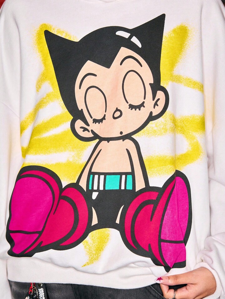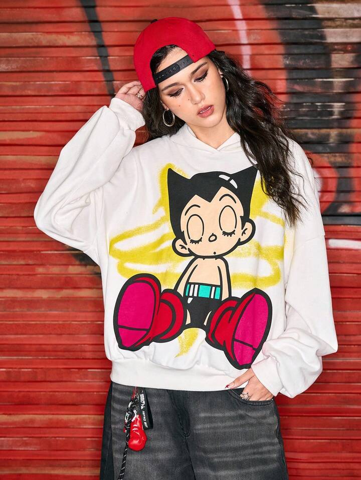 Astro Boy X ROMWE Retro Street Fashion Cartoon Graphic Loose Hooded Sweatshirt
