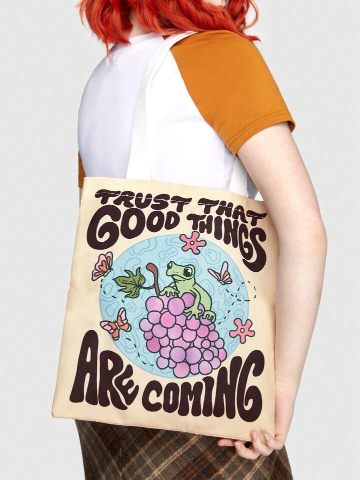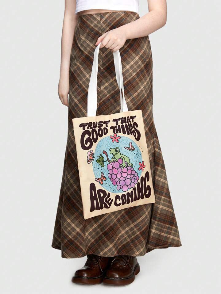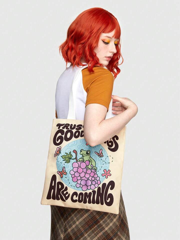Atosha Hippie Vintage English Double-sided Printed Canvas Shoulder Bag