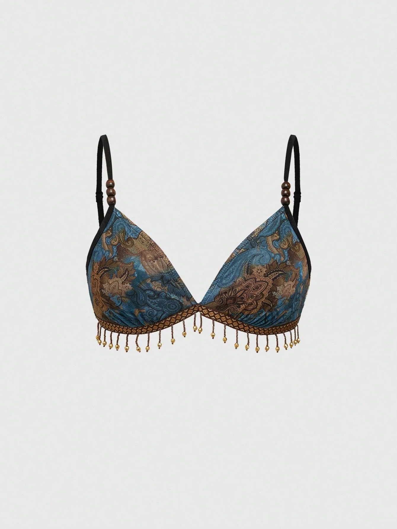 Hippie Back To School Women's Vintage Hippie Western Wooden Bead Decor Tassel Hem Paisley Print Vest, Can Be Matched With Skirt Or Pants