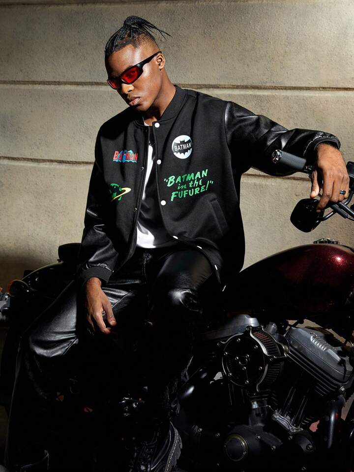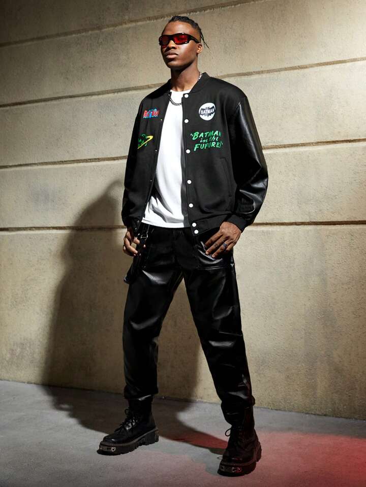 Batman X ROMWE Men Slogan Print Baseball Jacket
