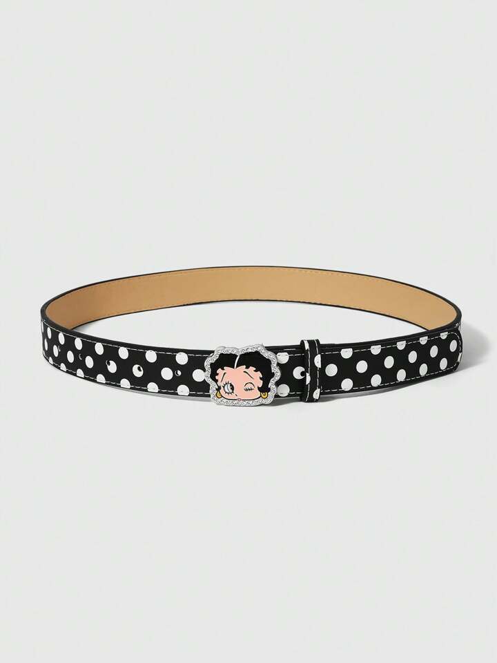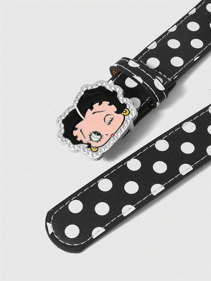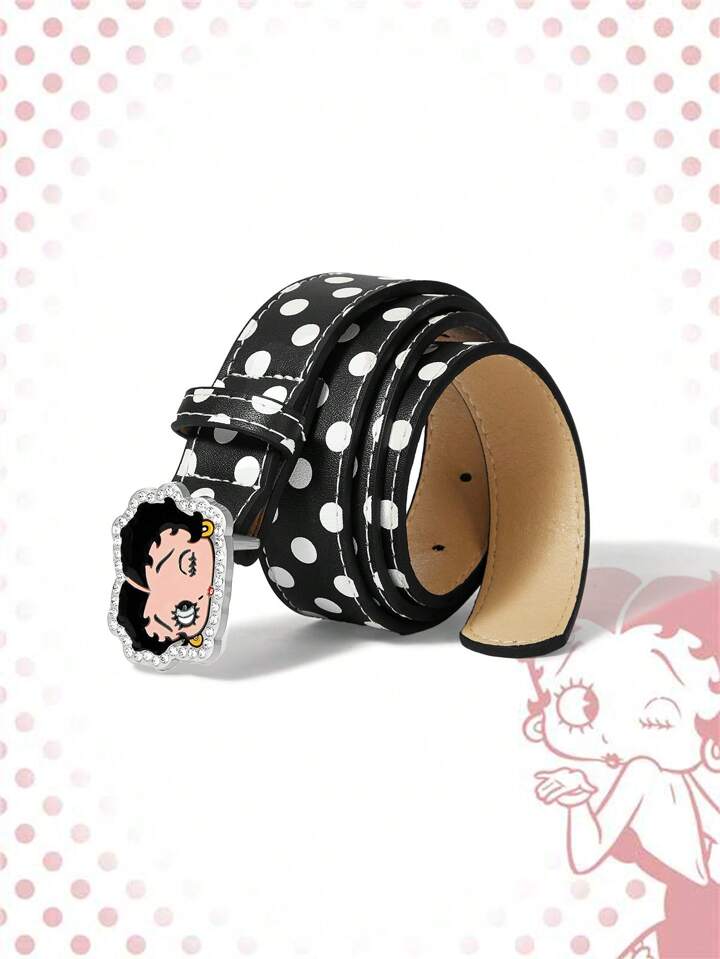 Betty Boop | ROMWE Cute Cartoon Character With Rhinestone Decor Polka Dot Black Belt
