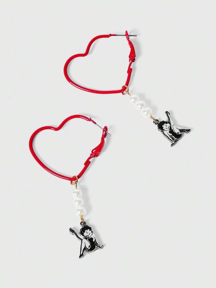 Betty Boop | ROMWE Elegant Faux Pearl Necklace And Earring Set With Cute Heart And Figure Pattern