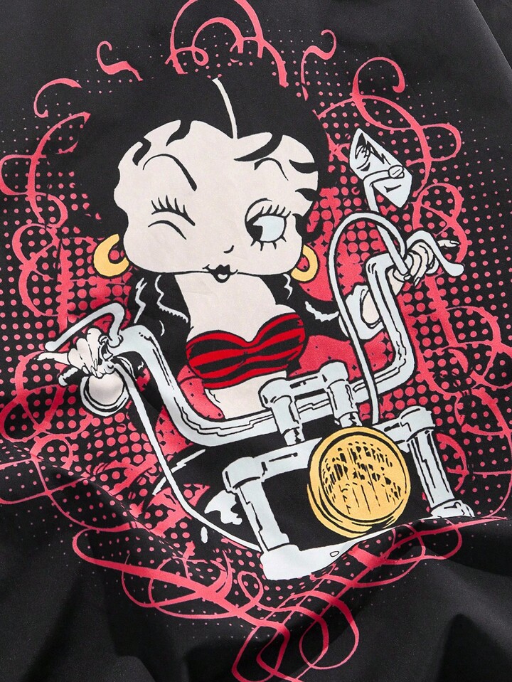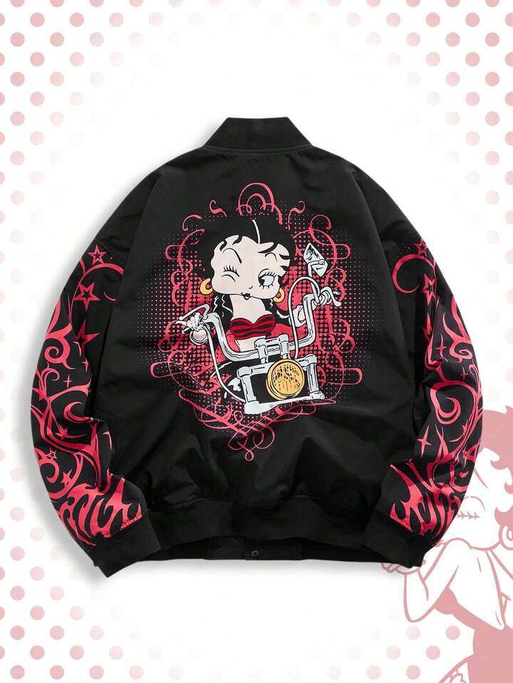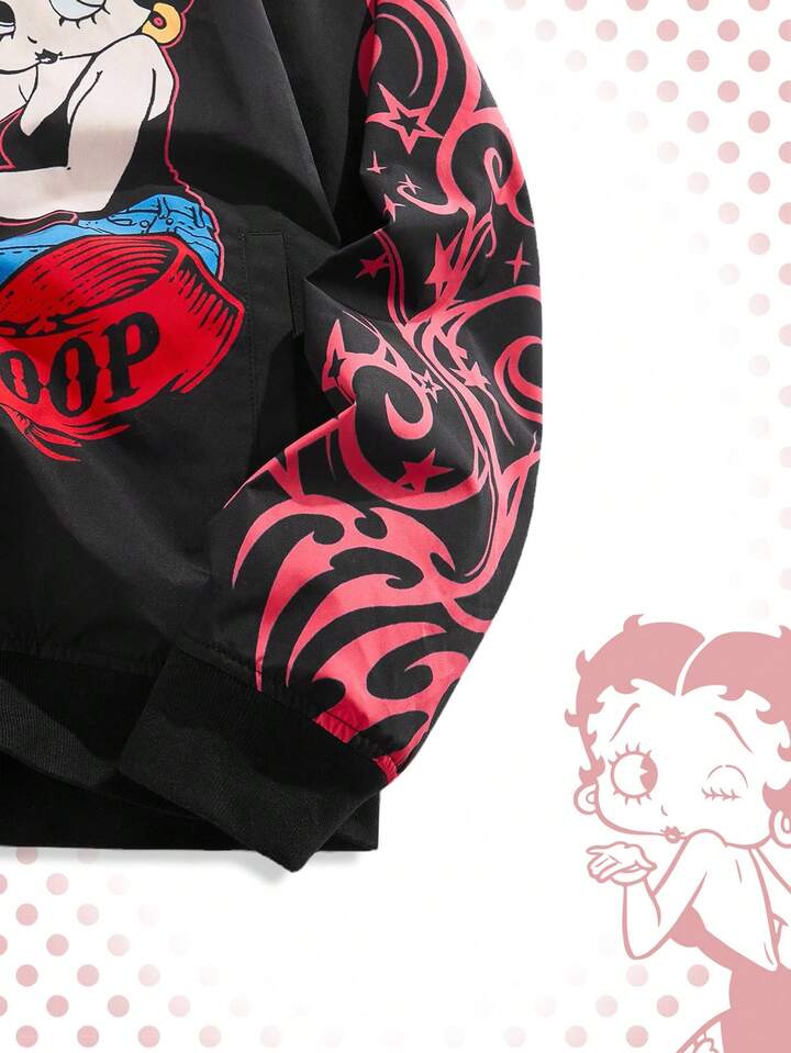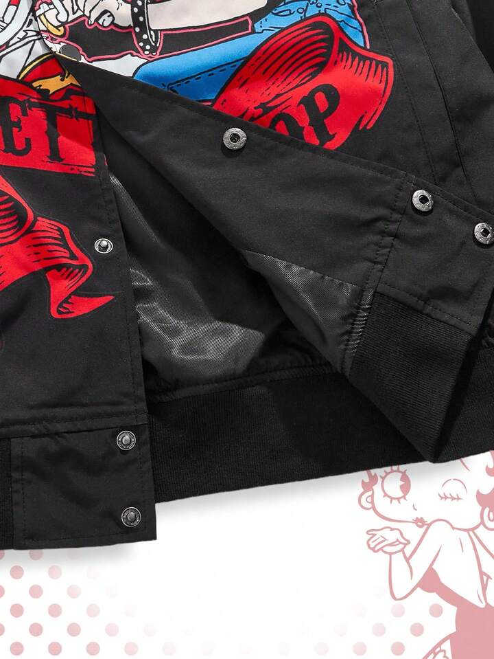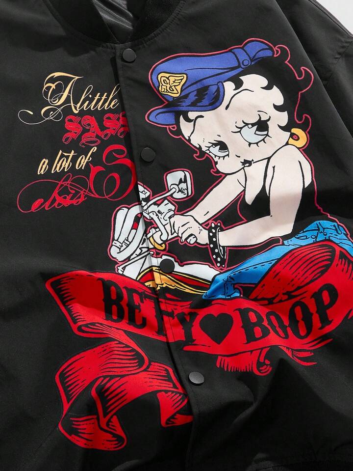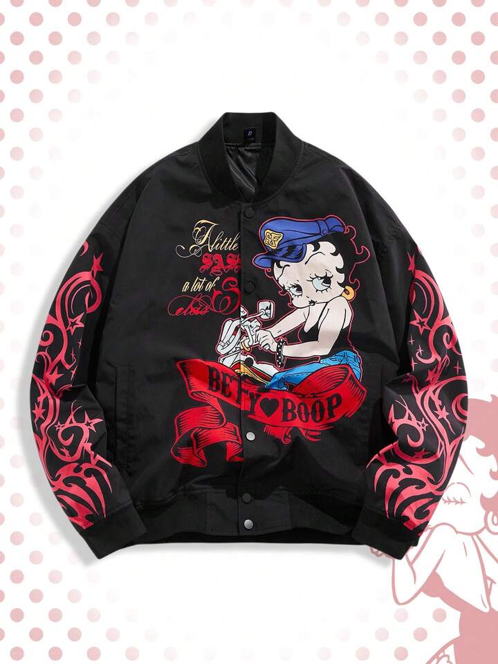 Betty Boop | ROMWE Men Cartoon Figure Graphic Single Breasted Placket Long Sleeve Baseball Jacket , Fall