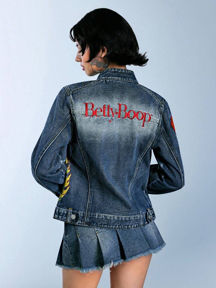 Betty Boop | ROMWE Vintage Biker Chick Betty Collab Distressed Retro Women Denim Jacket And Coat