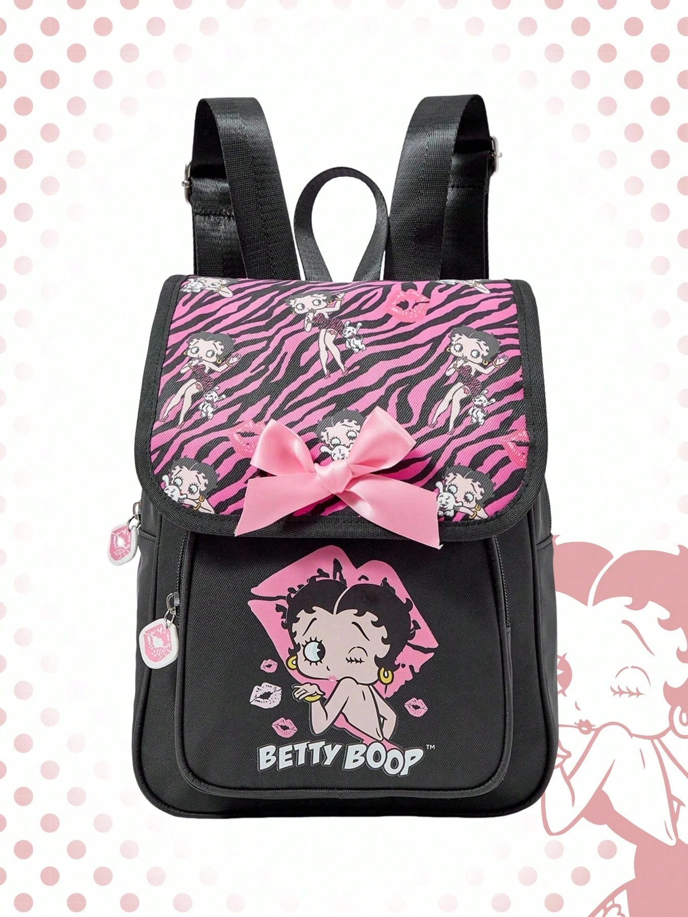 Betty Boop | ROMWE Women Fashion Backpack With Cute Ribbon Bow & Leopard Pattern Design