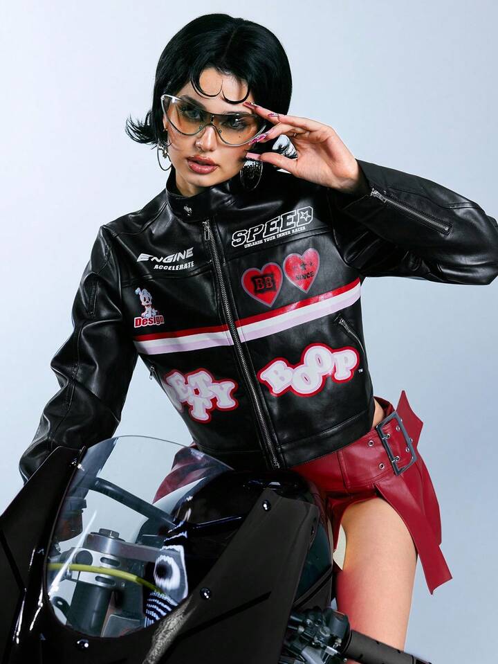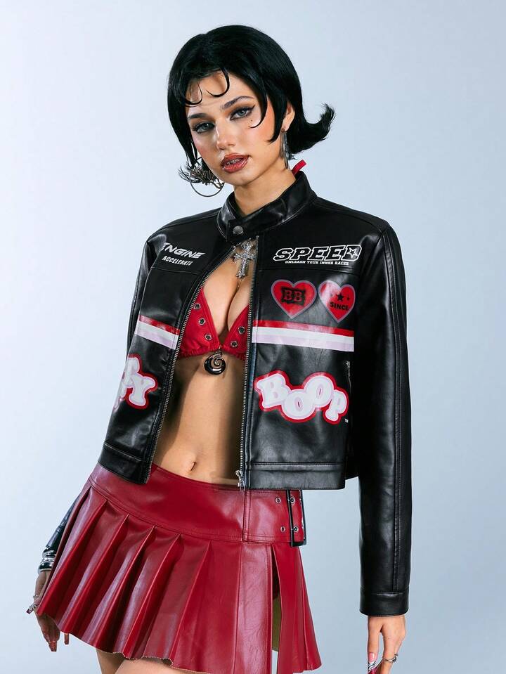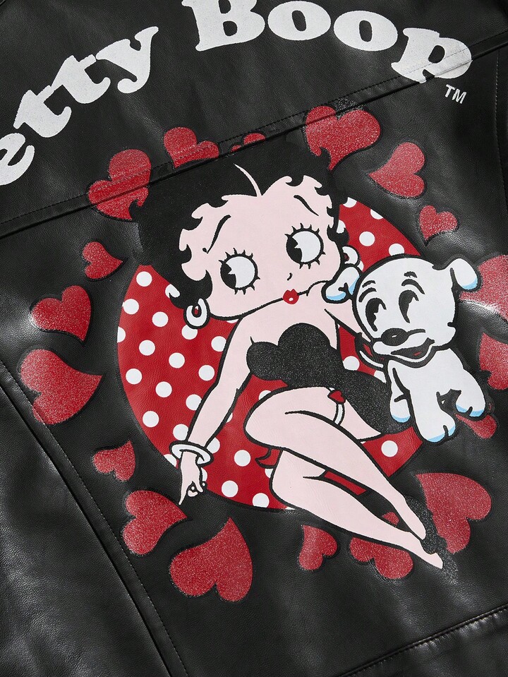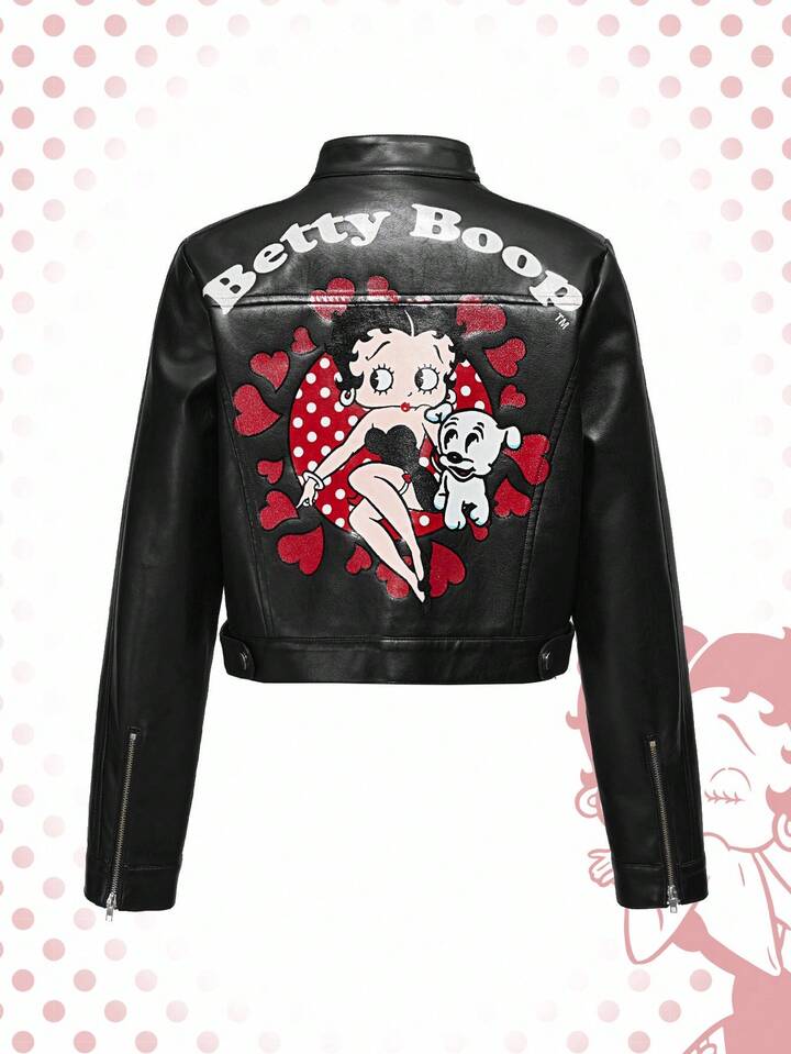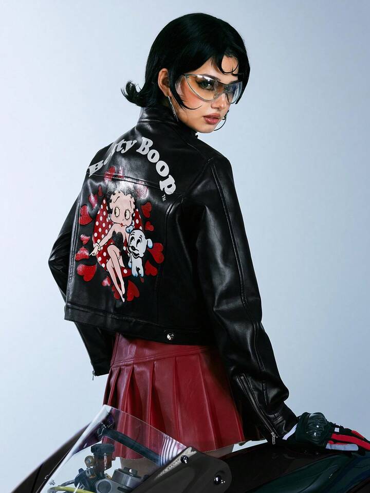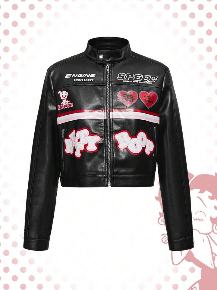 Betty Boop | ROMWE Women's Casual Letter Graphic Zip Up Jacket