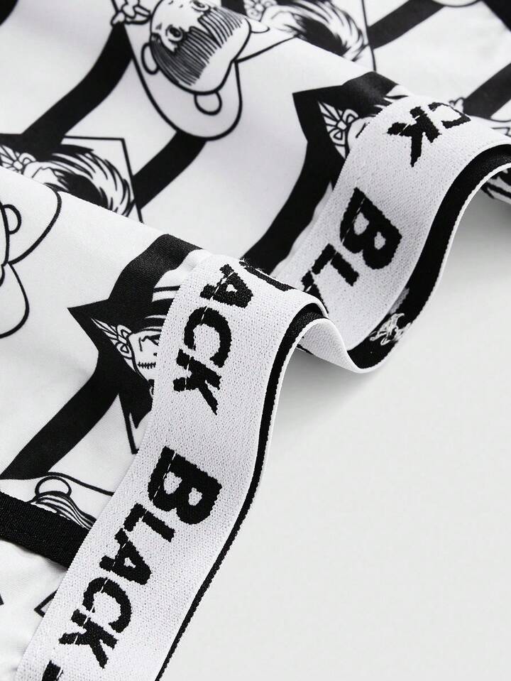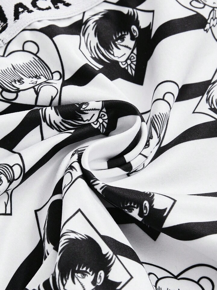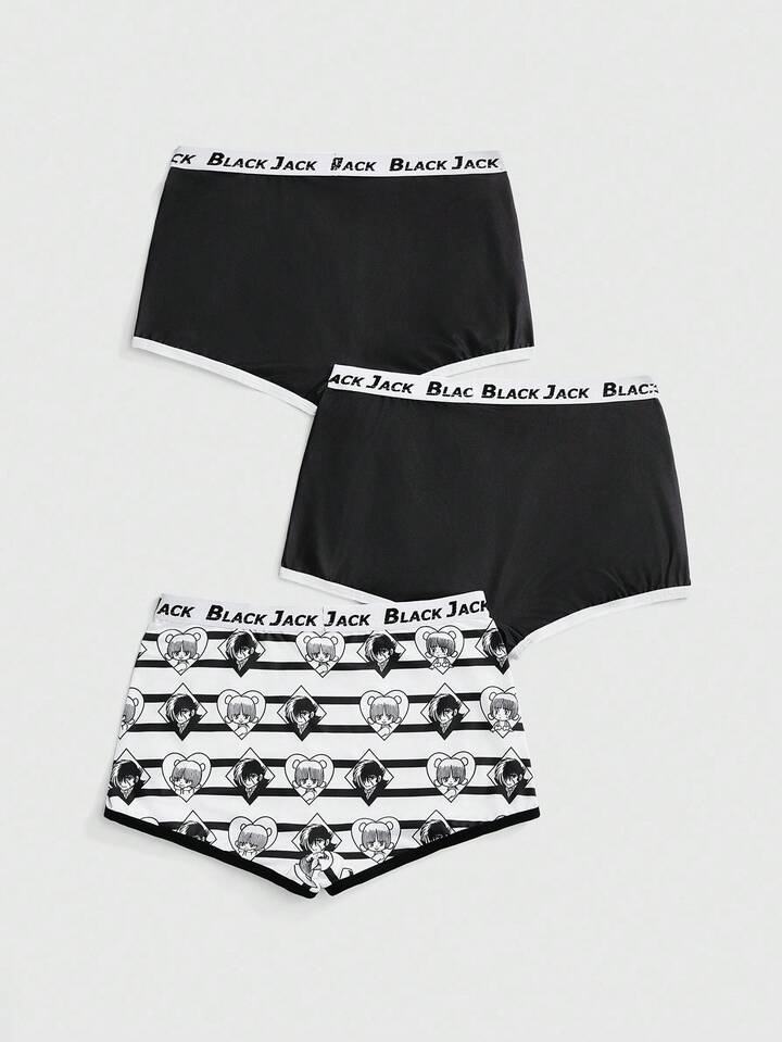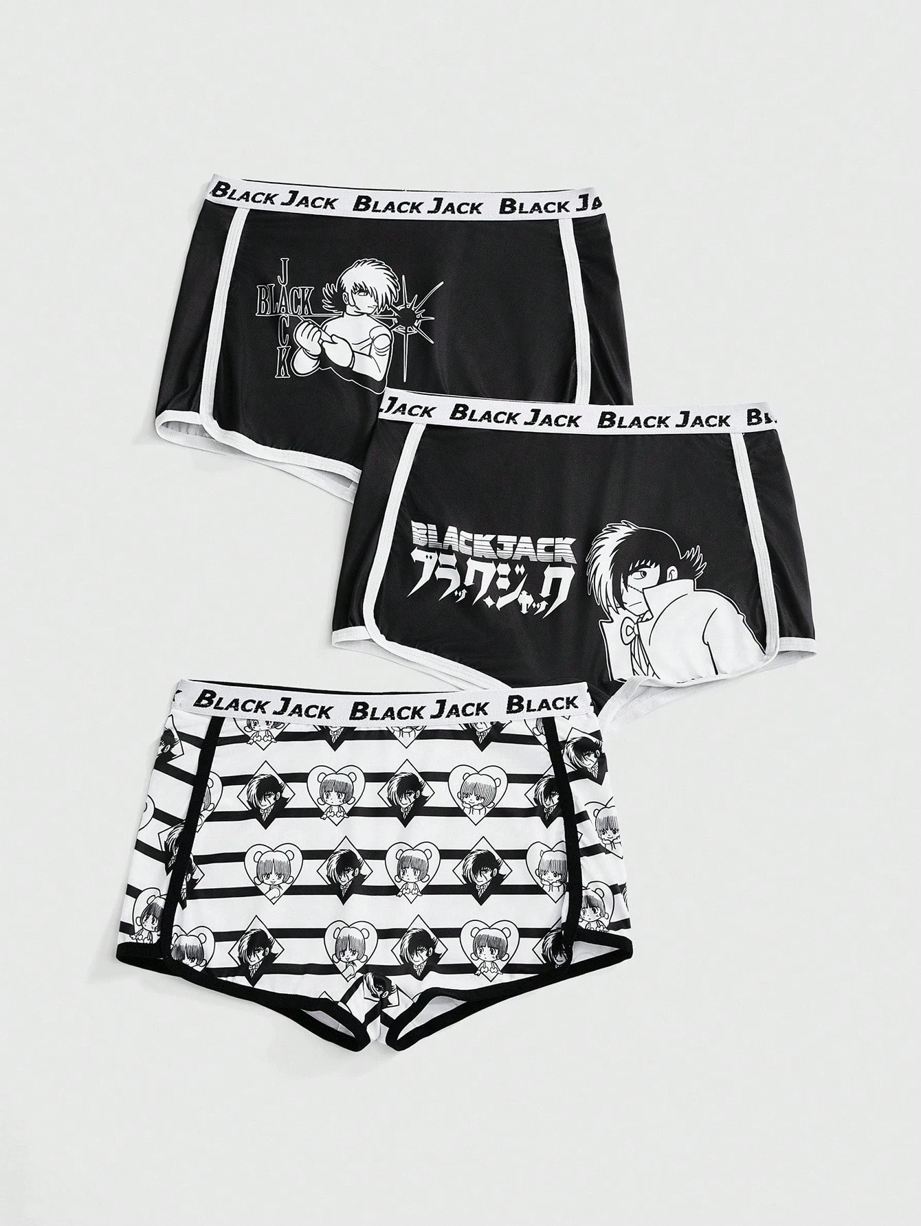 Black Jack X ROMWE 3pcs/Set Cartoon Figure Graphic Jacquard Waistband Graphic Print Splice Boxer Briefs