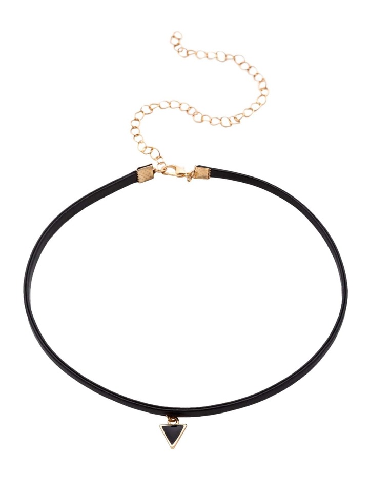 Black Triangle Pendant Thin Choker Necklace