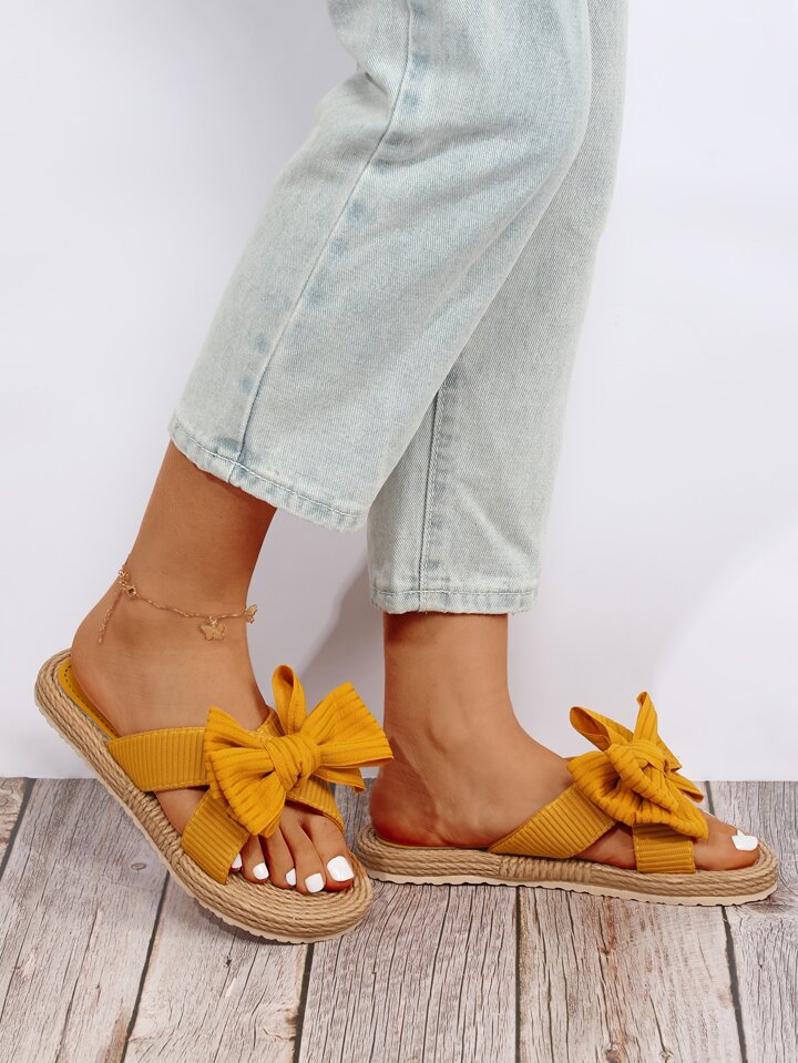 Bow Decor Espadrille Sole Slides