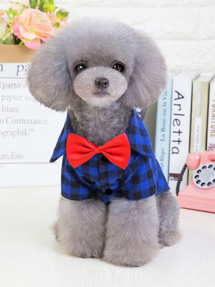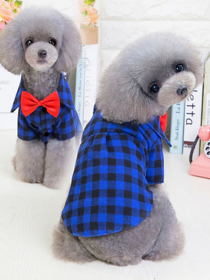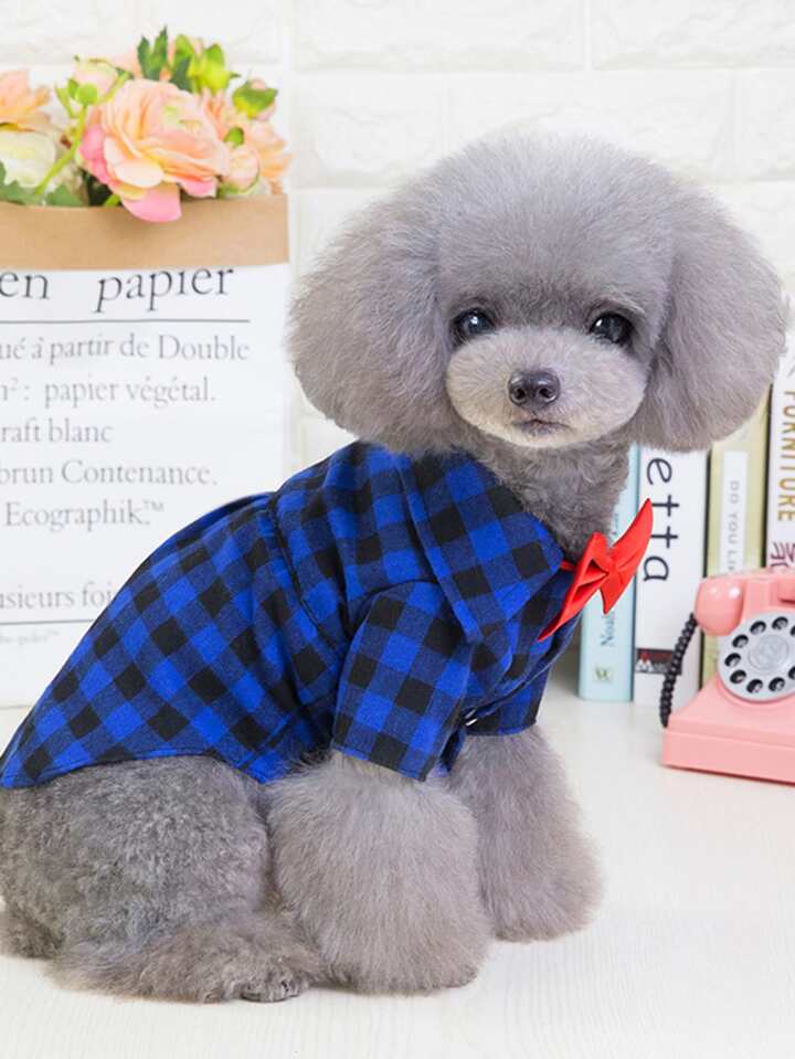 Bow Decor Plaid Print Pet Shirt