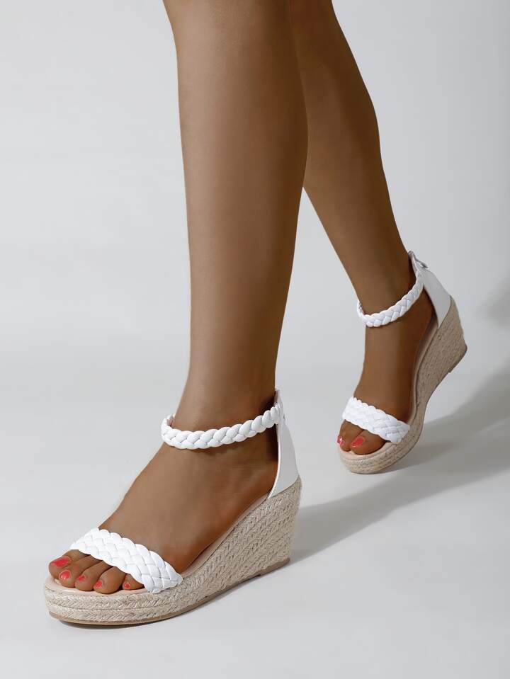 Braided Detail Ankle Strap Espadrille Wedge Sandals