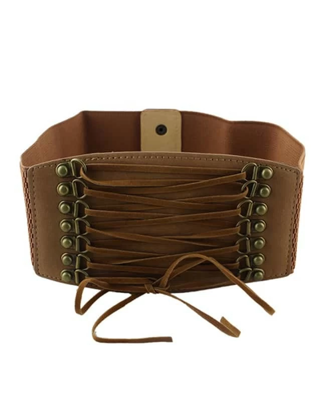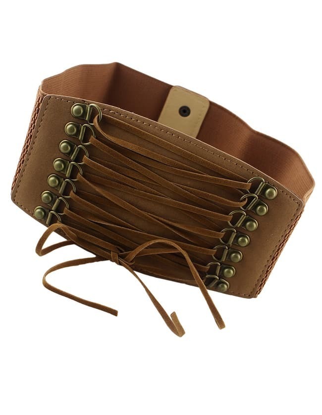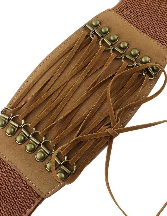 Brown PU Leather Elastic Wide Fashion Waist Belt