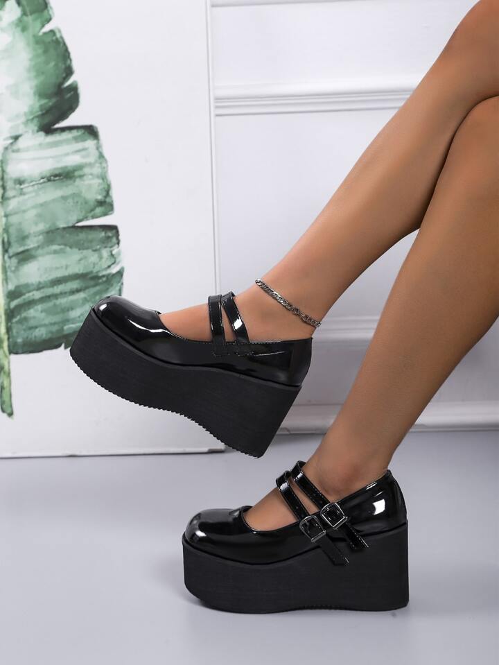Buckle Decor Mary Jane Wedge Shoes