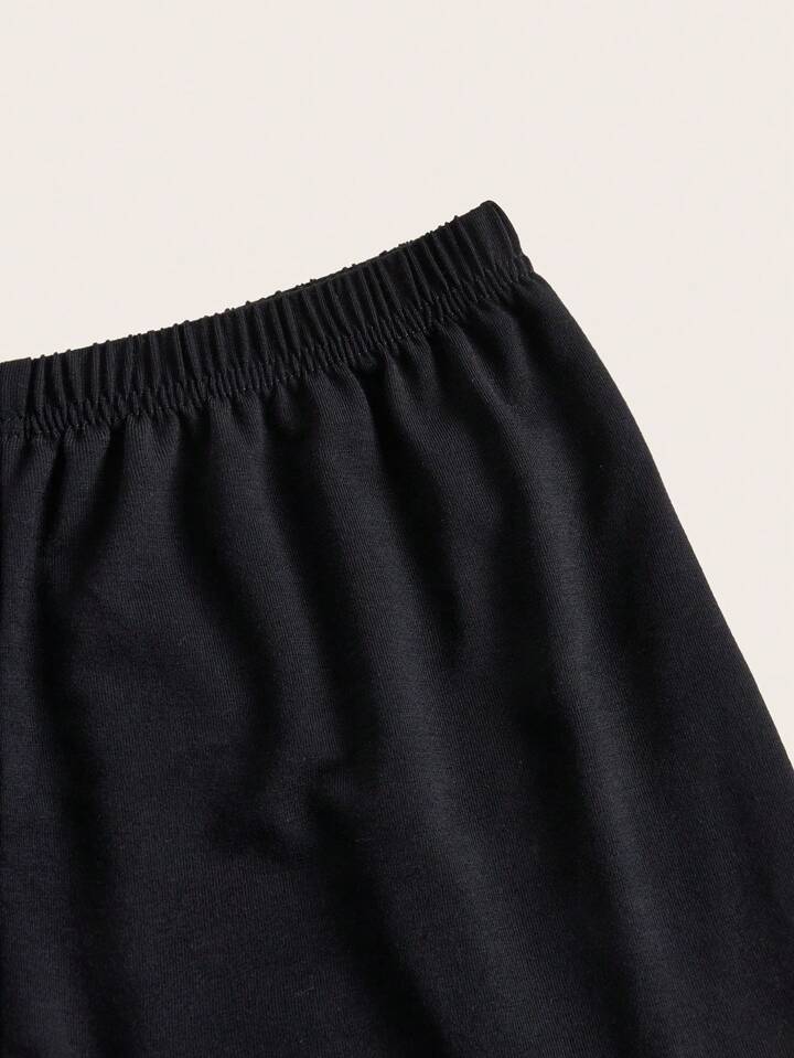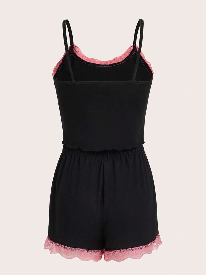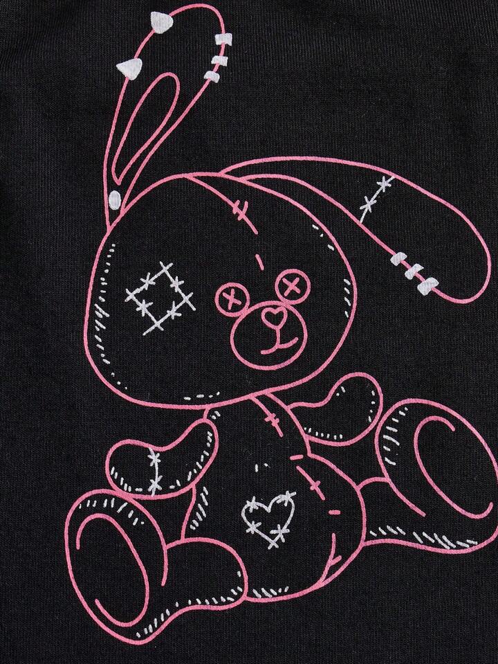Bunny and Bear Cartoon Rabbit Graphic Contrast Lace PJ Set