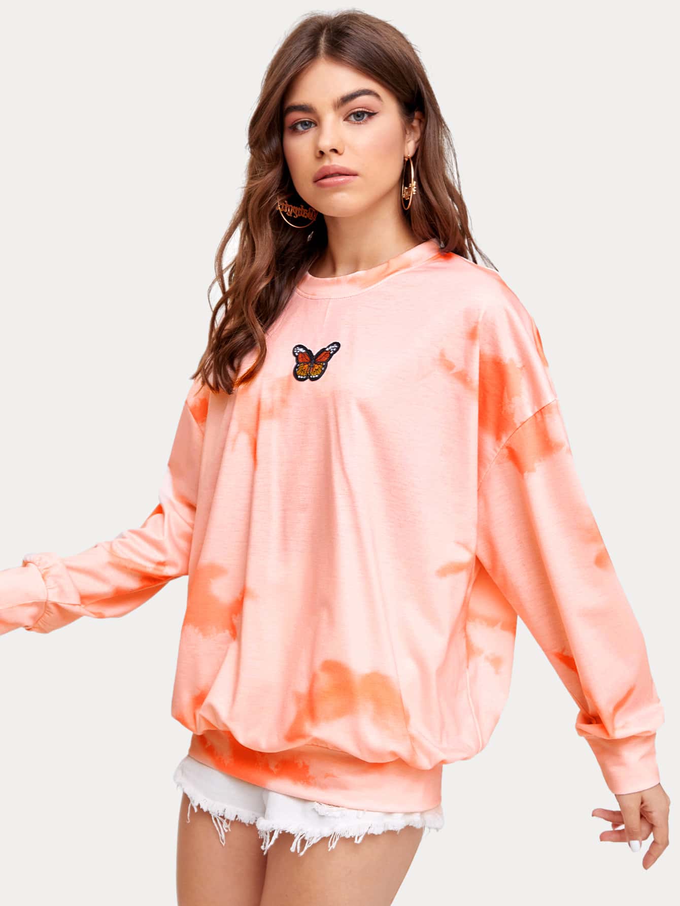 Butterfly Embroidery Tie Dye Oversized Sweatshirt