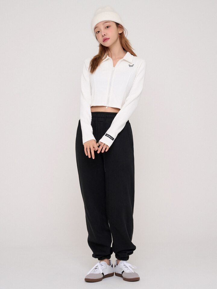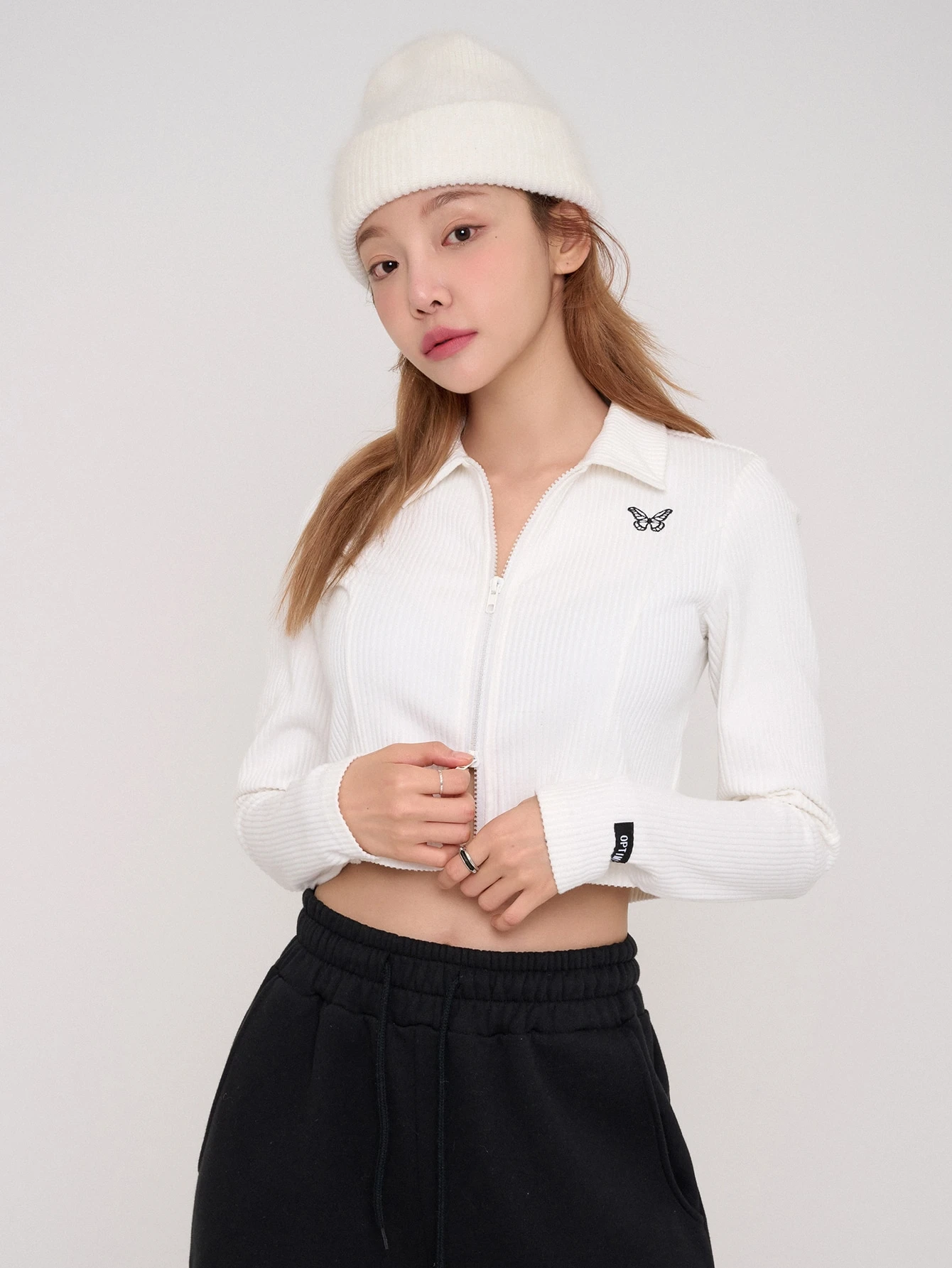 Butterfly Embroidery Two-way Zip Up Crop Tee