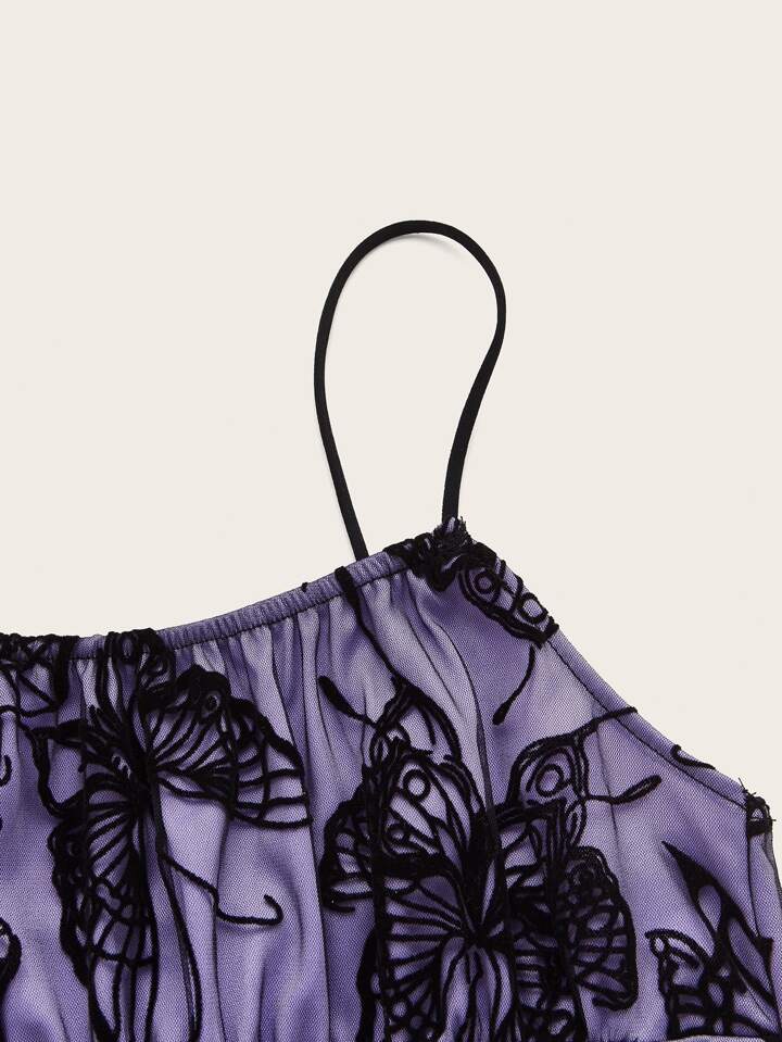 Butterfly Mesh Ruched Bust Cami Dress
