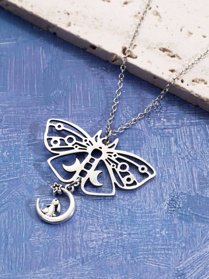 Butterfly & Moon Pendant Necklace