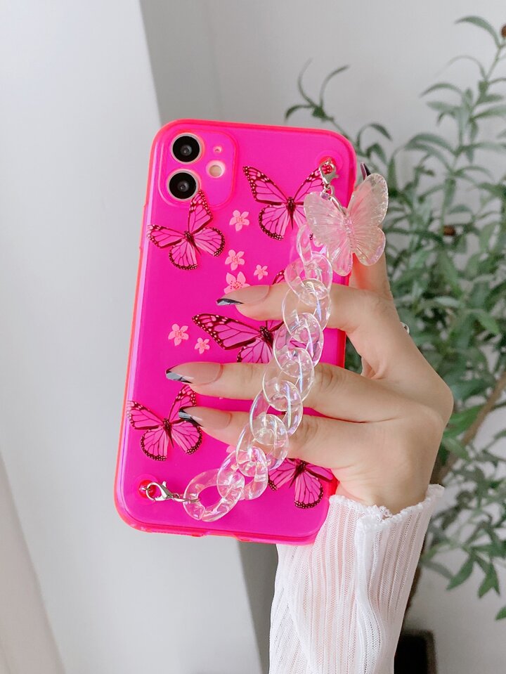 Butterfly Pattern Chain Hand Strap Phone Case