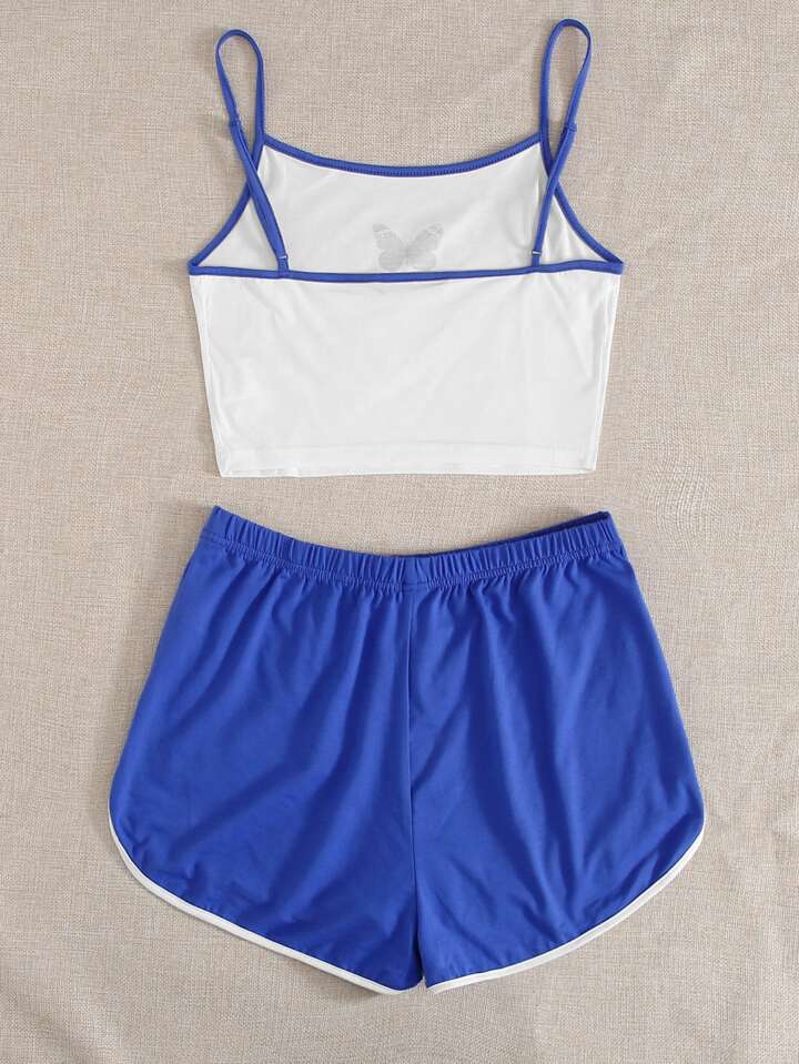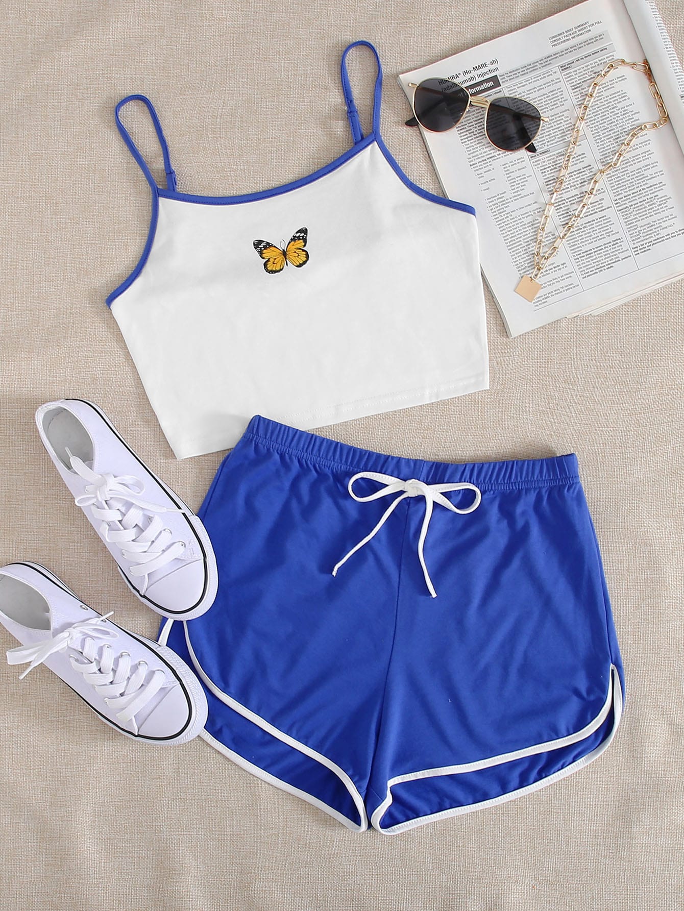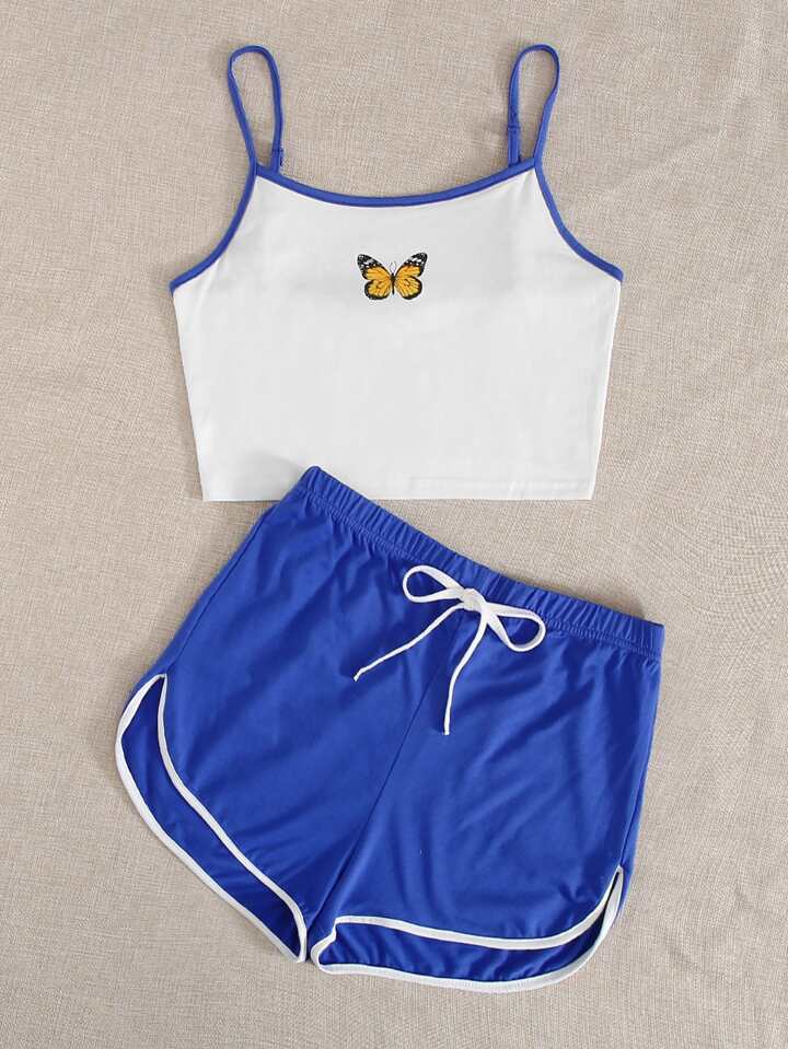 Butterfly Print Contrast Binding Cami Top & Dolphin Shorts Set
