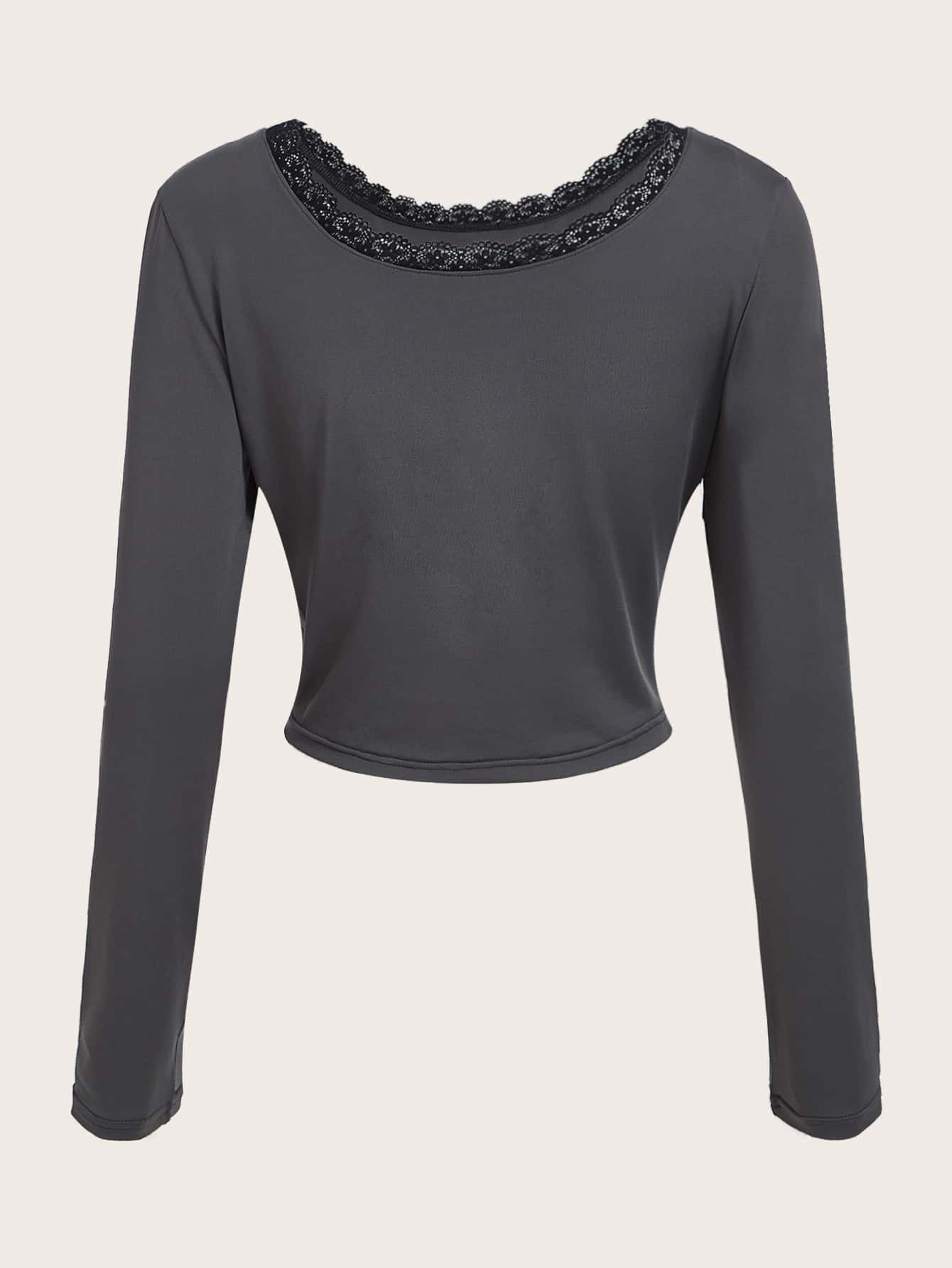 Butterfly Print Contrast Lace Tee
