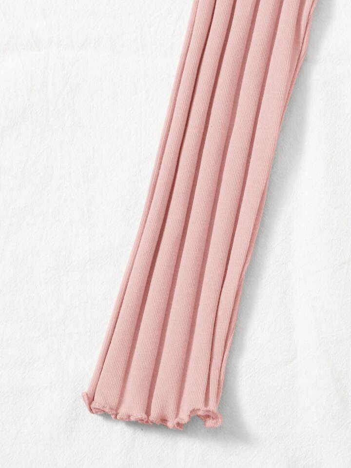 Button Front Lettuce Trim Rib-knit Tee