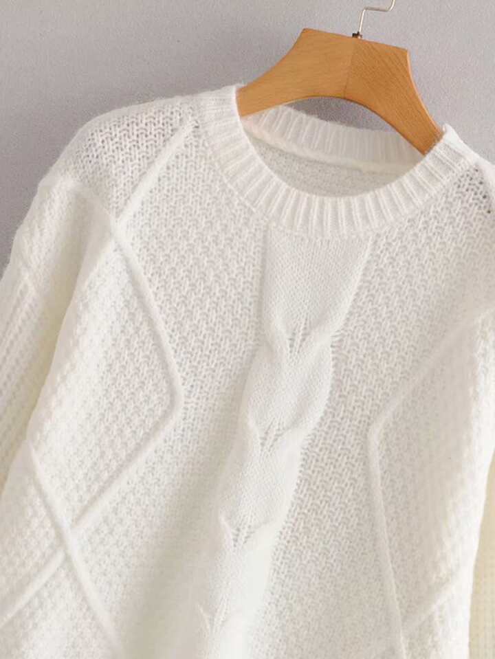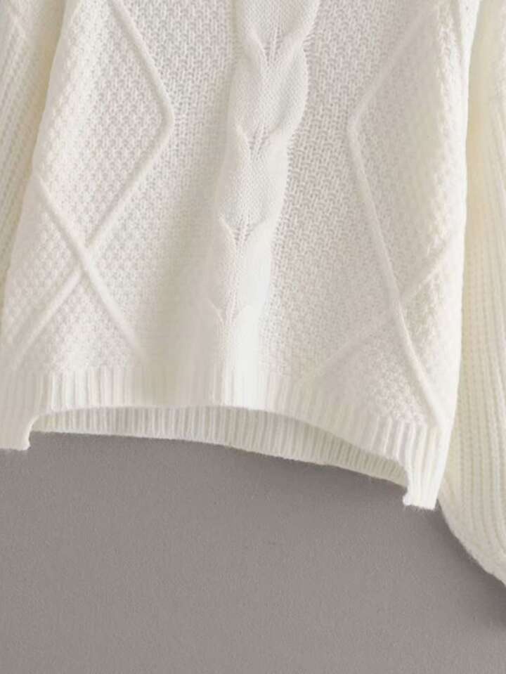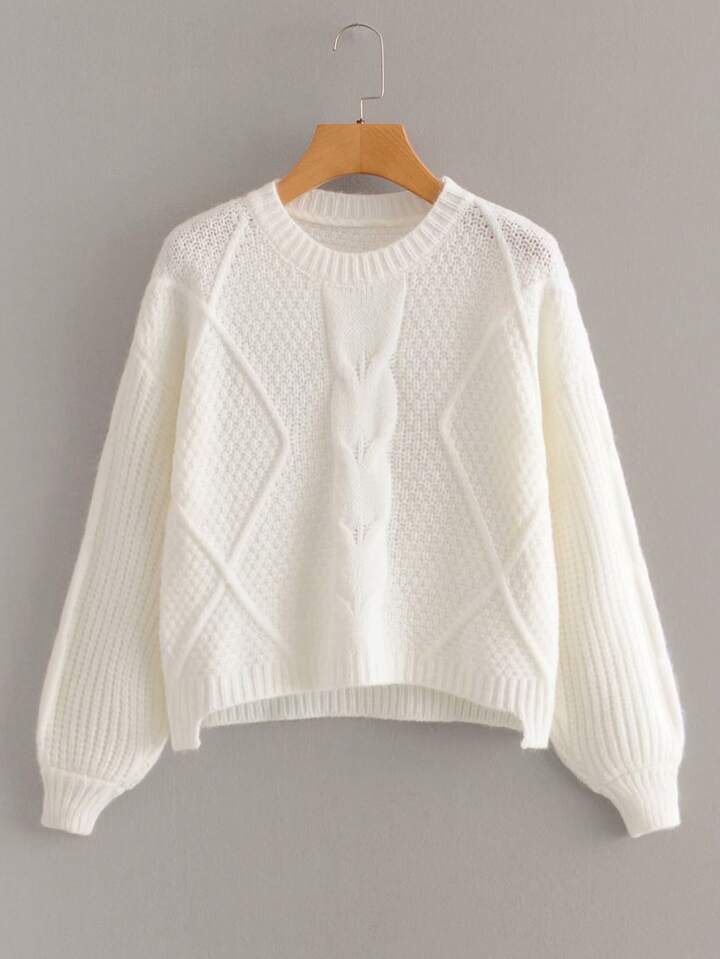 Cable & Ribbed Knit Bishop Sleeve Sweater