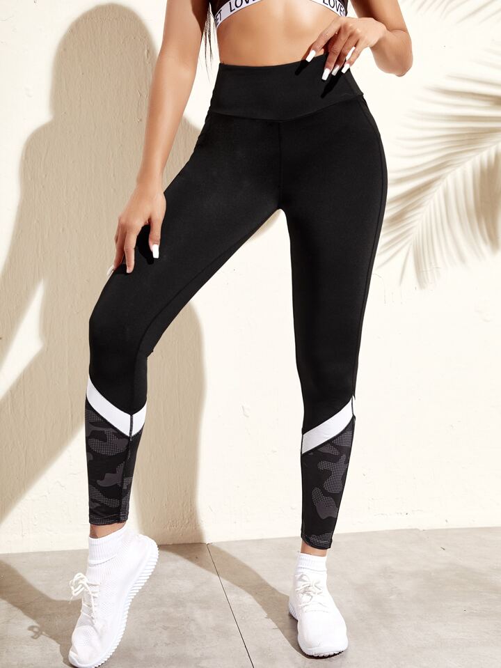 Camo Pattern Tri-Panel Yoga Tights Seamless High Stretchy Gym Leggings