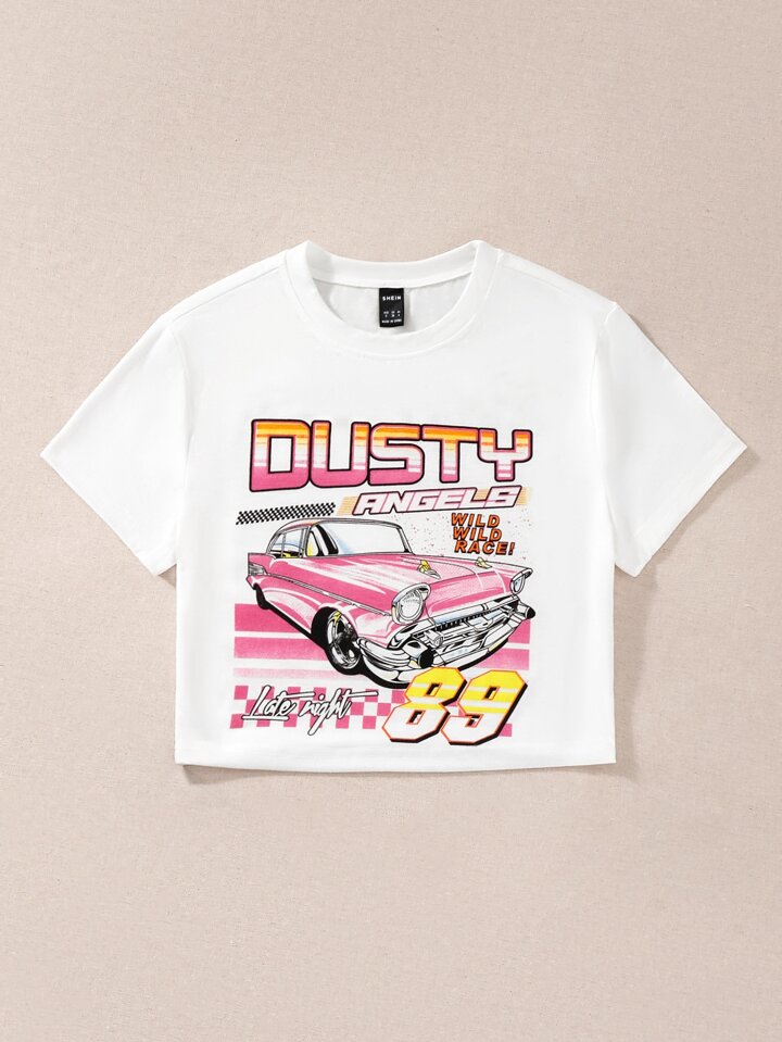 Car & Letter Graphic Crop Tee