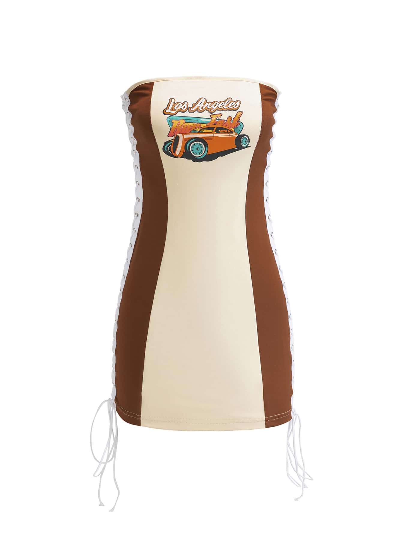 Car & Letter Graphic Lace Up Dress