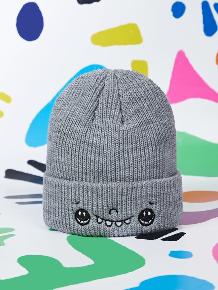 Cartoon Embroidered Cuff Beanie