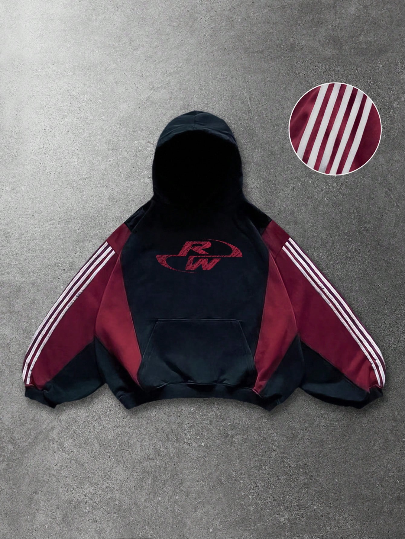 Casual Men's Patchwork Contrast Color Hoodie, Loose Cropped Style