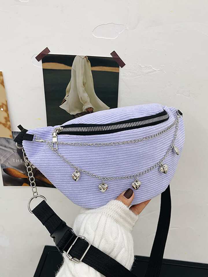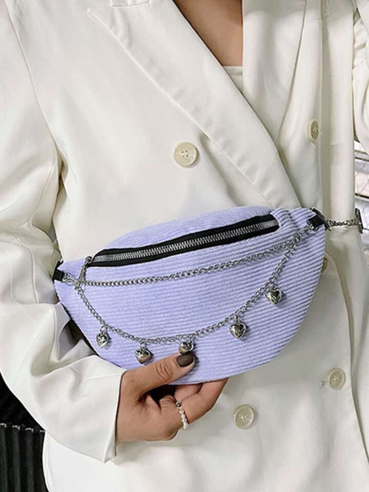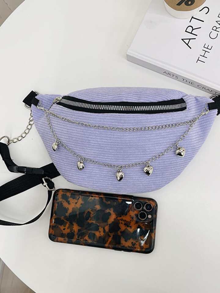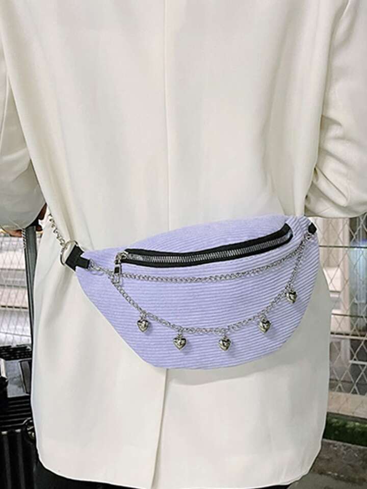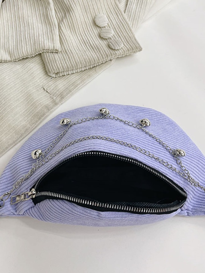 Chain Decor Corduroy Fanny Pack