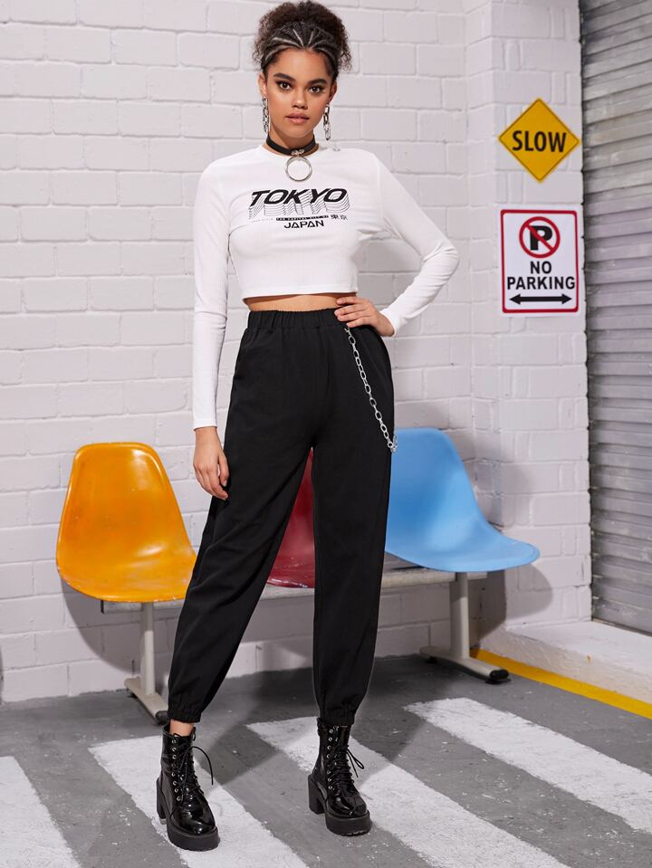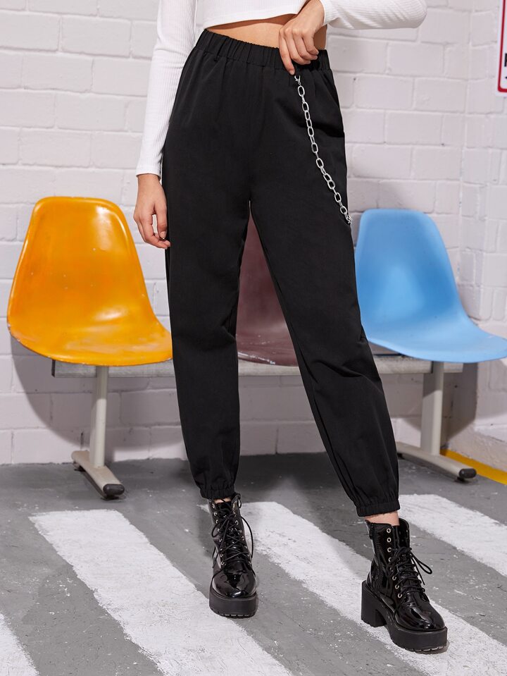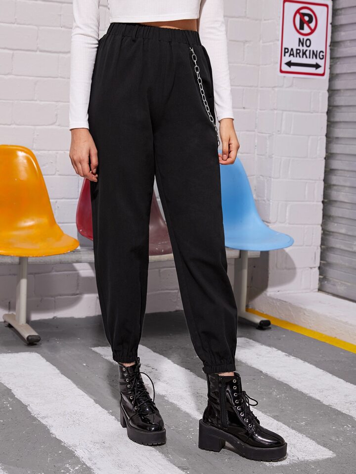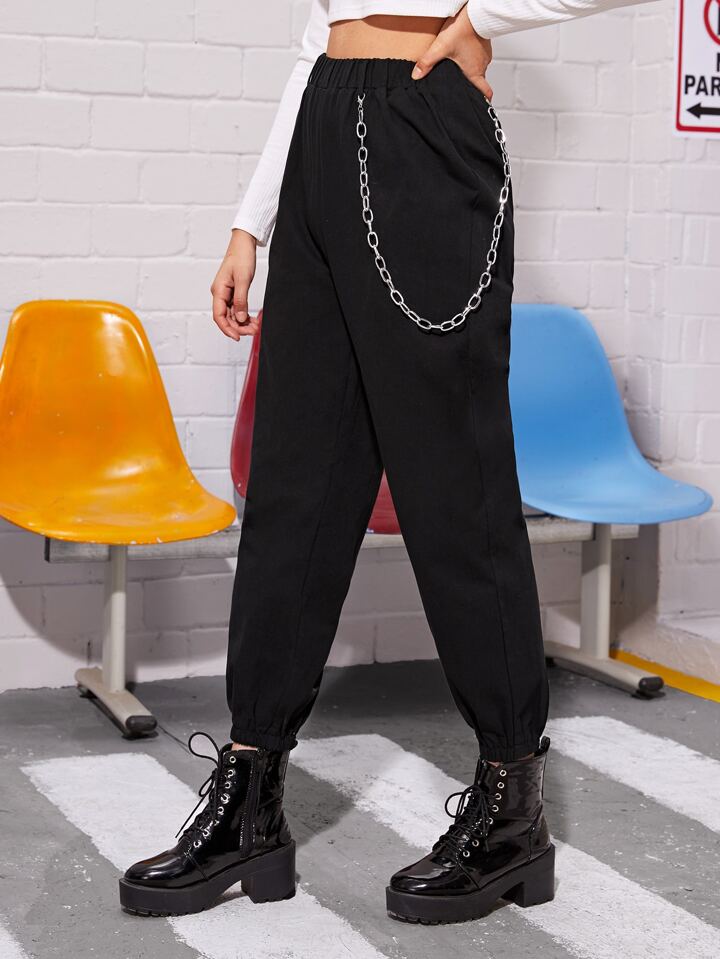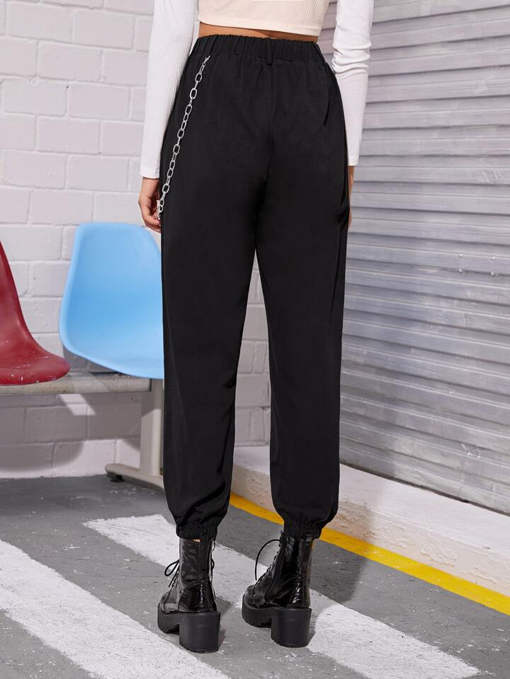 Chain Detail Solid Cargo Pants