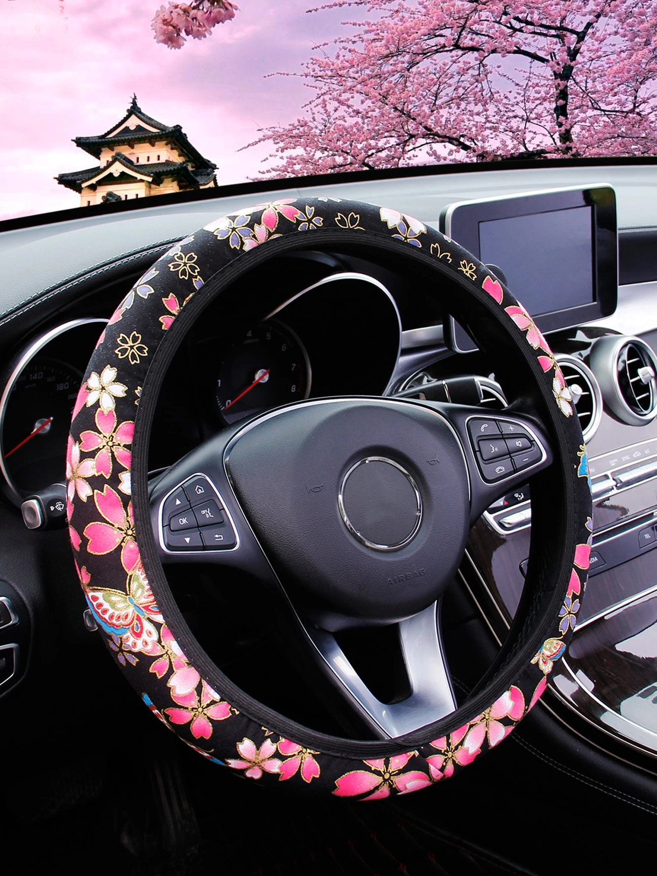 Cherry Blossom Pattern Steering Wheel Cover