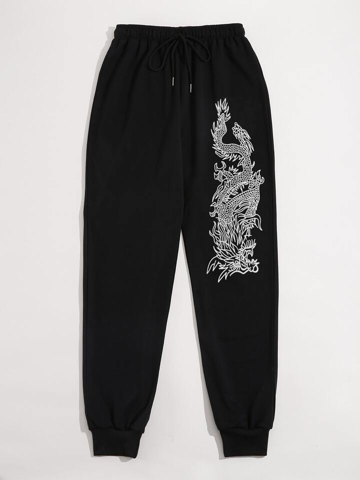 Chinese Dragon Graphic Drawstring Waist Sweatpants