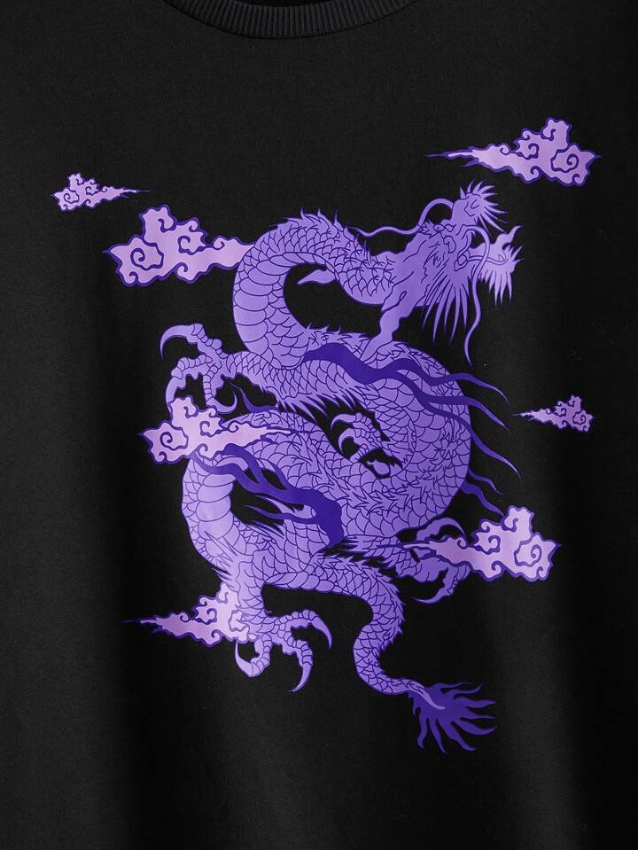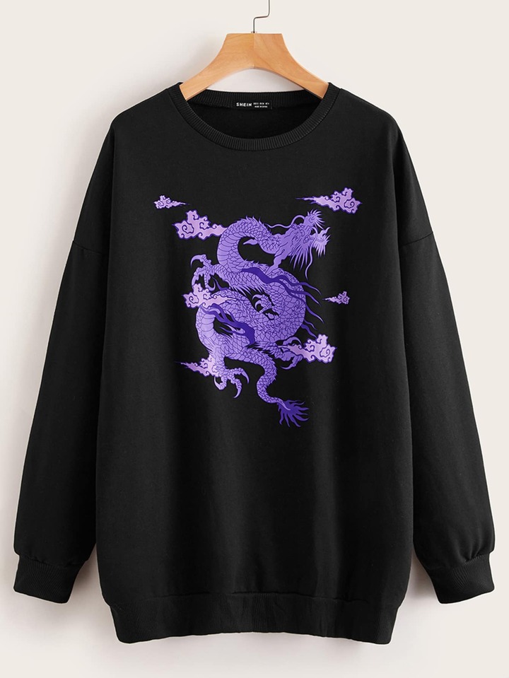 Chinese Dragon Graphic Longline Oversized Sweatshirt