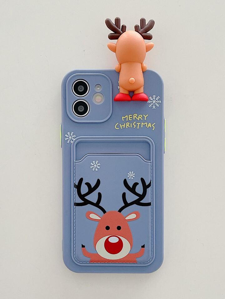 Christmas Elk Pattern Phone Case With Card Slot