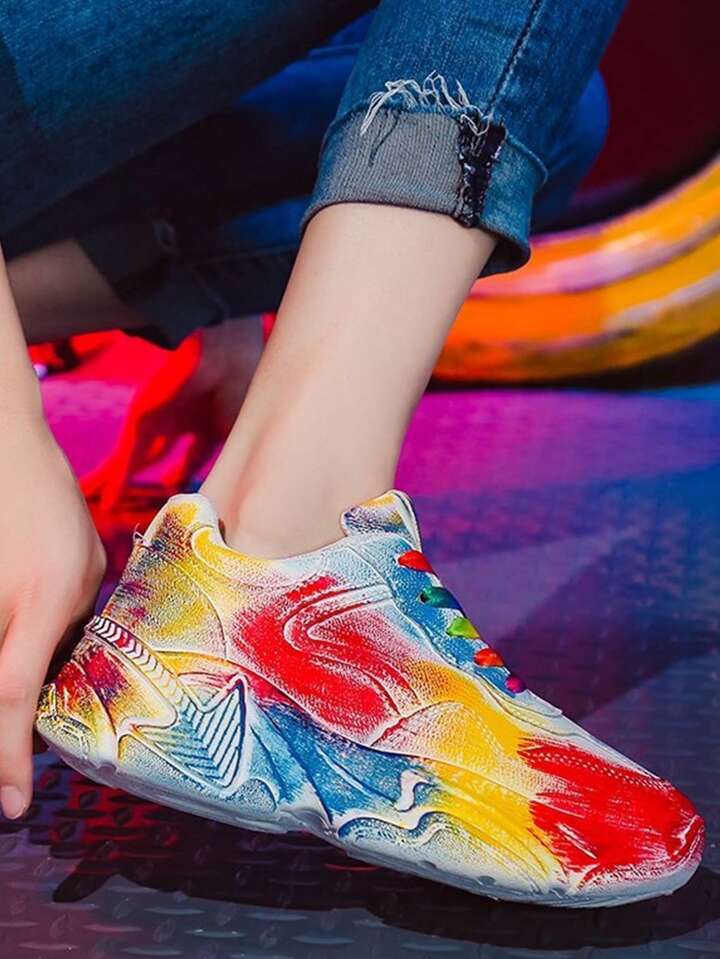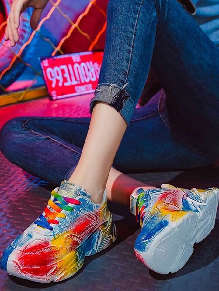 Chunky Shoes: Women's Casual Sportswear With Increased Height Graffiti Sneakers, Thick Sole Running Shoes