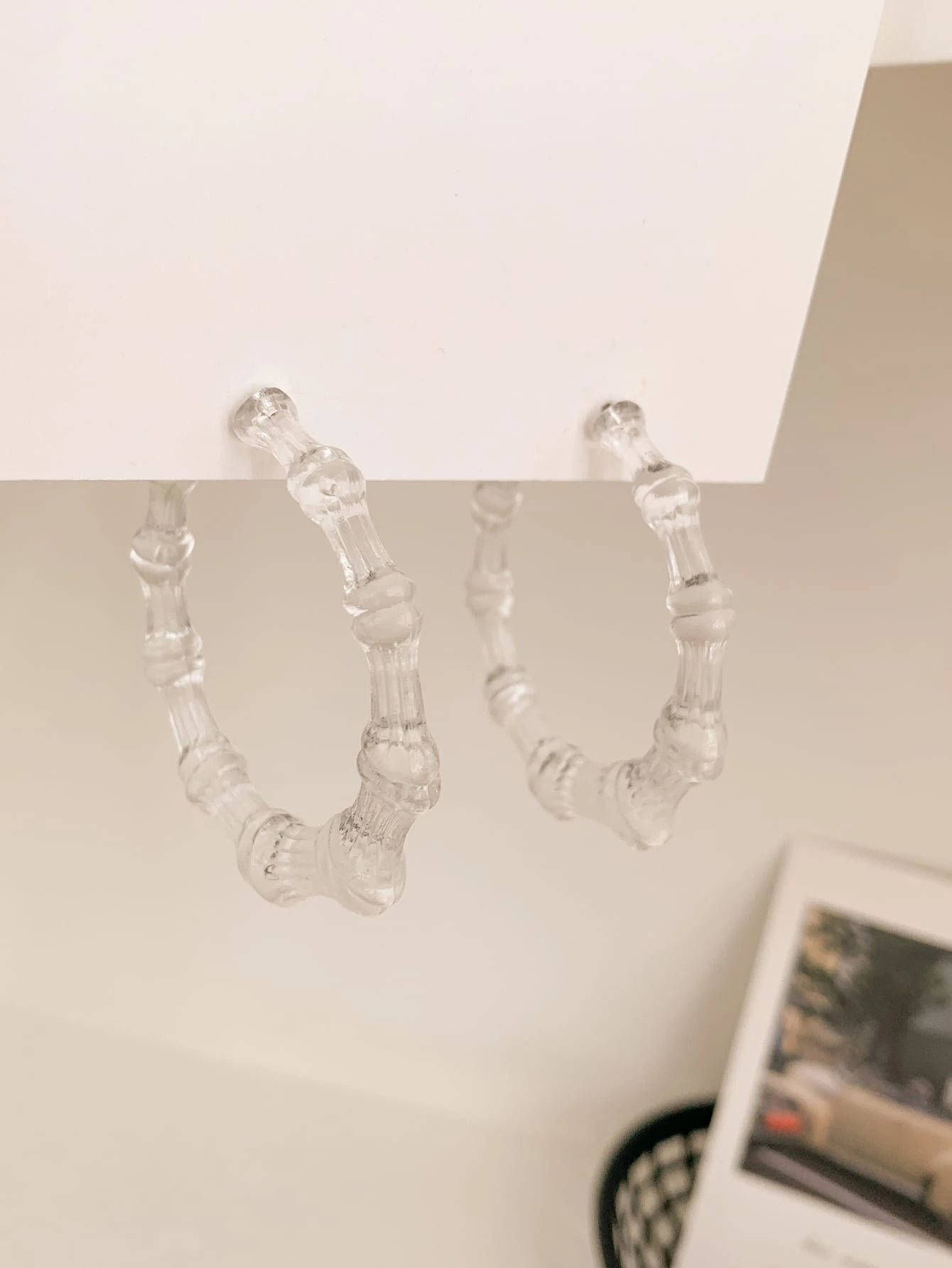Clear Bamboo Joint Design Hoop Earrings
