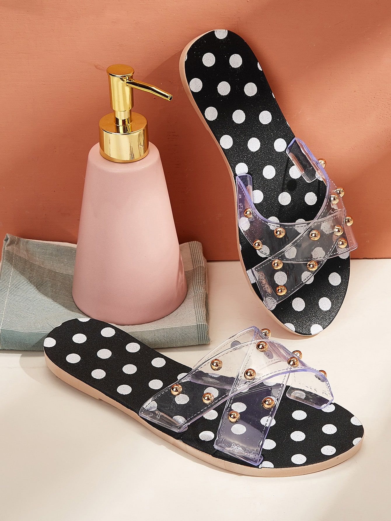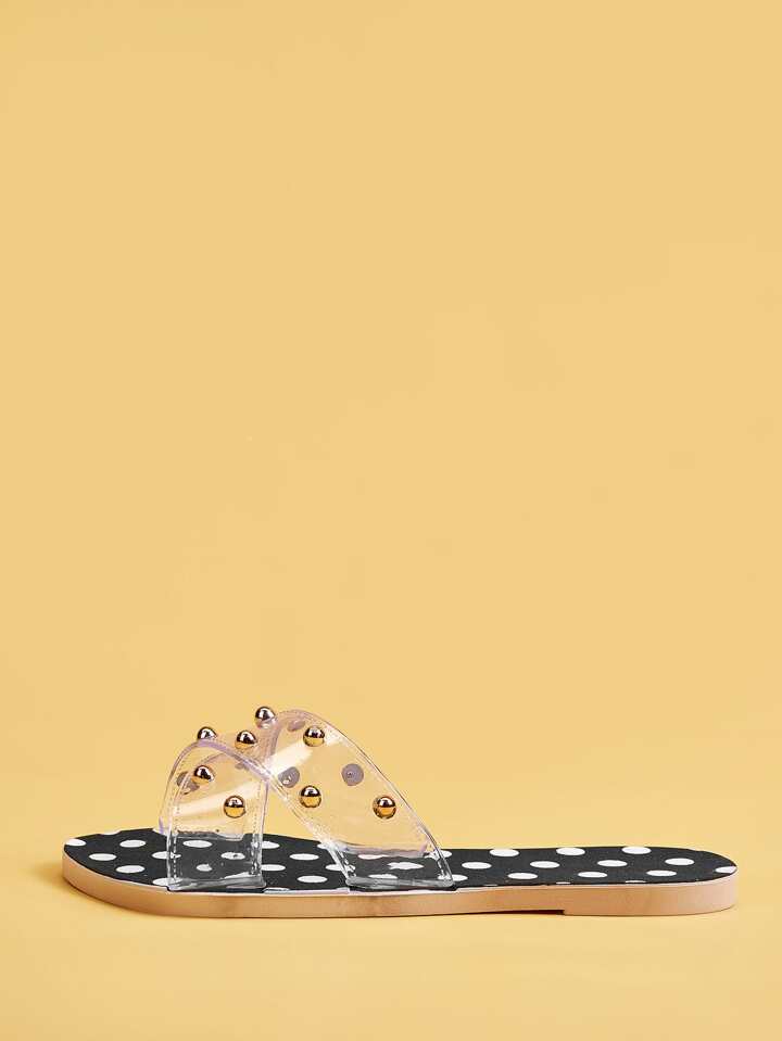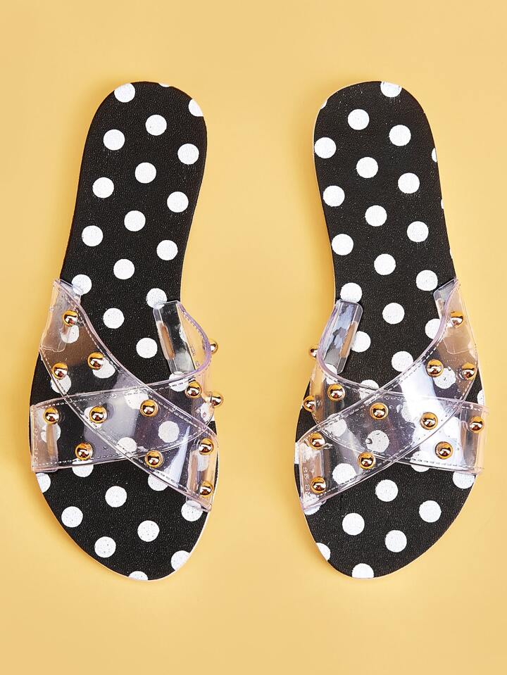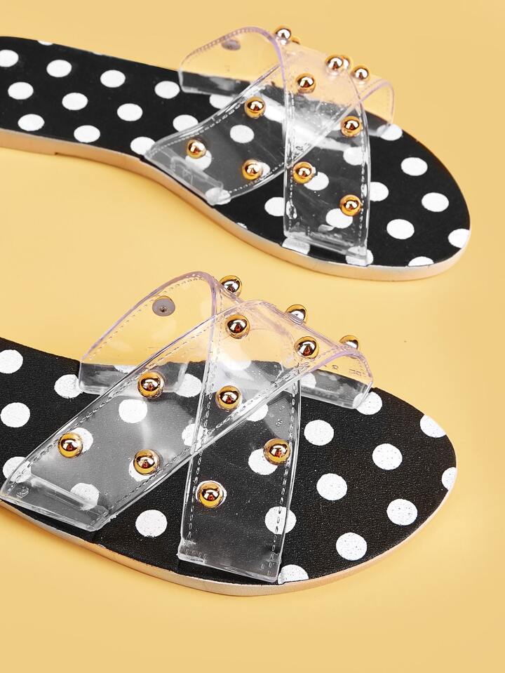Clear Studded Decor Criss Cross Sliders