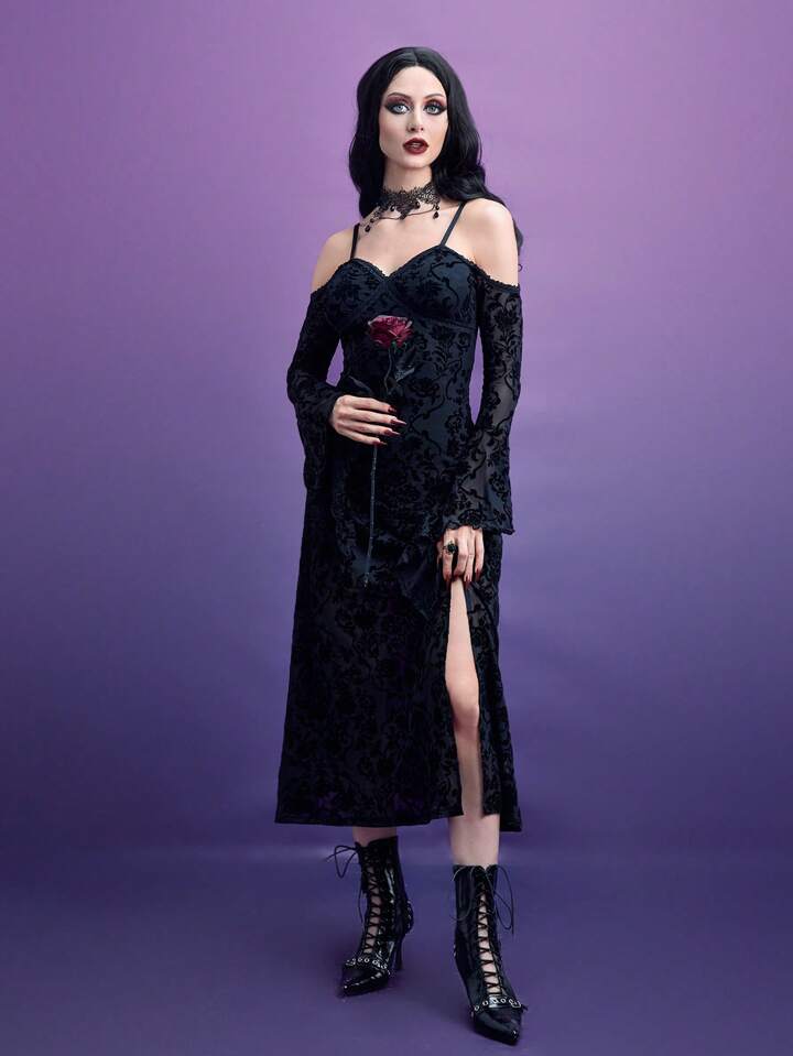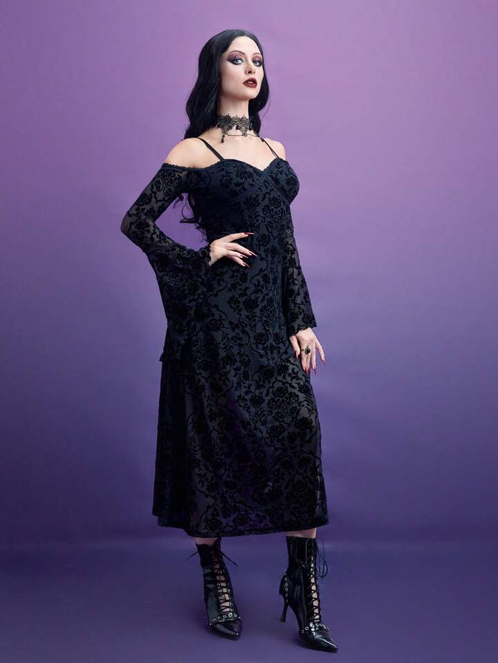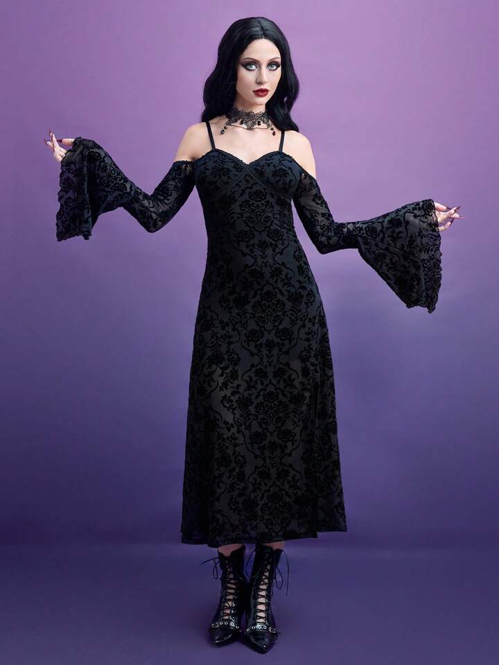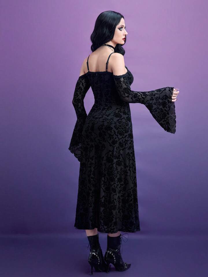 Cold Shoulder Flare Sleeve Split Thigh Dress