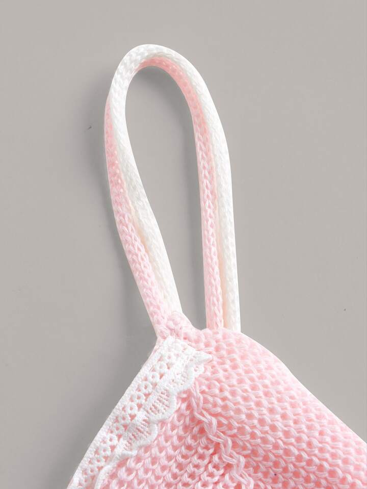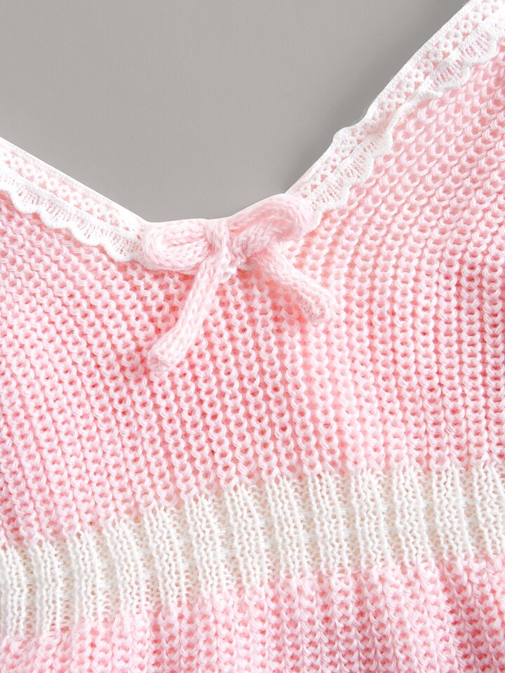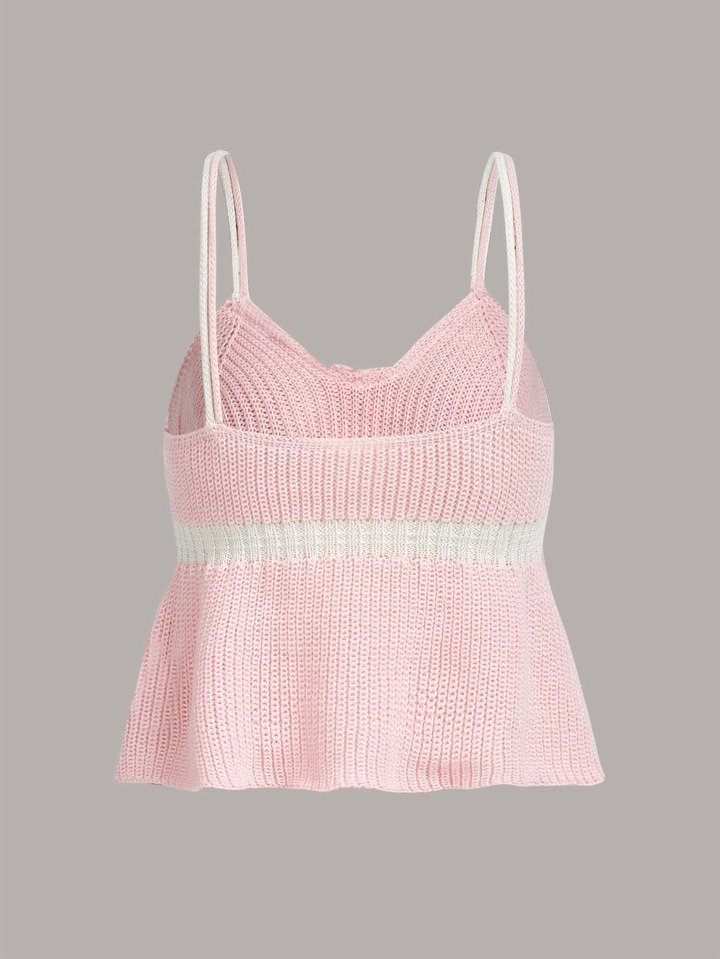 Color-block Bow Front Cami Knit Top