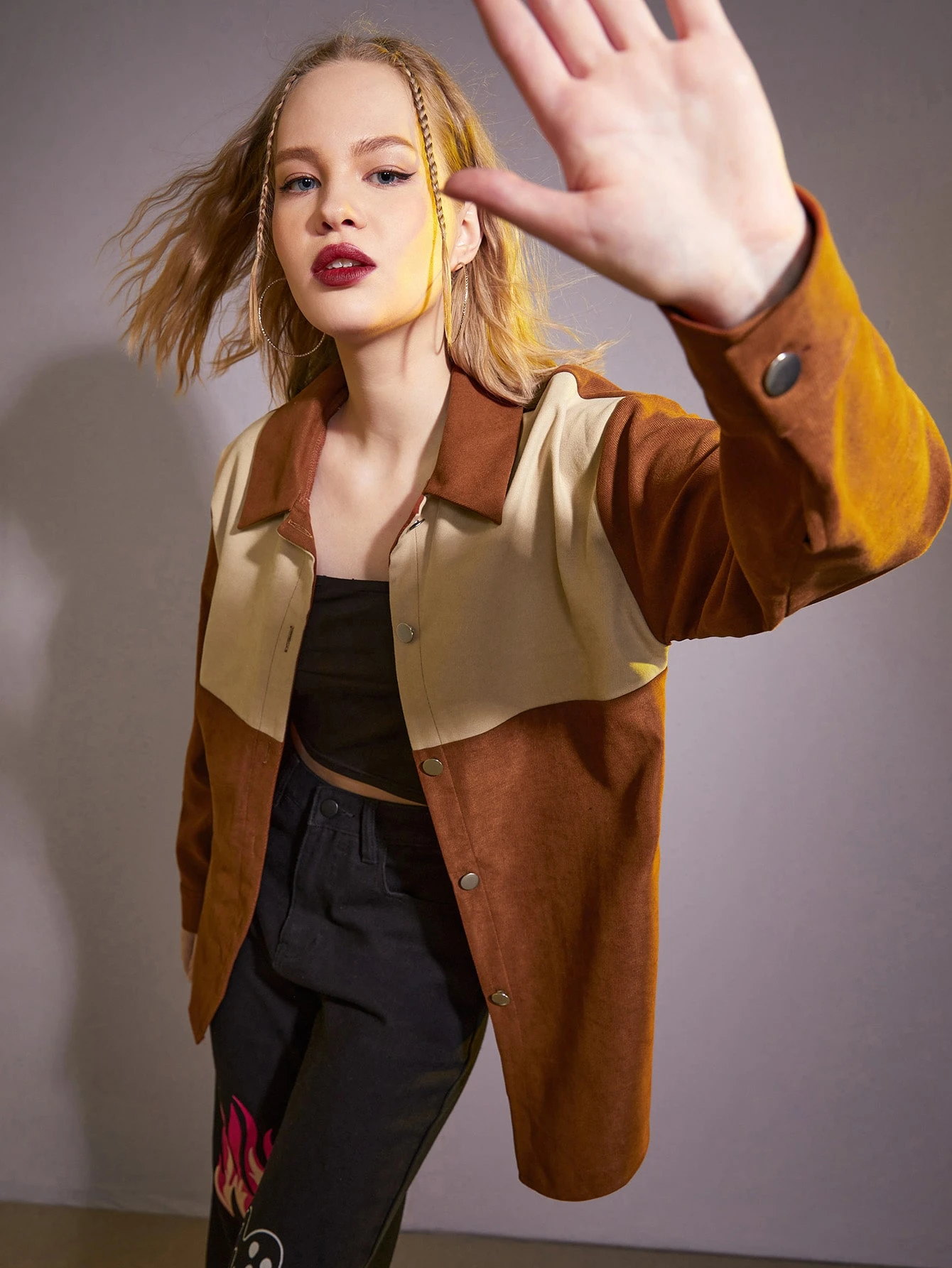 Colorblock Button Front Overshirt