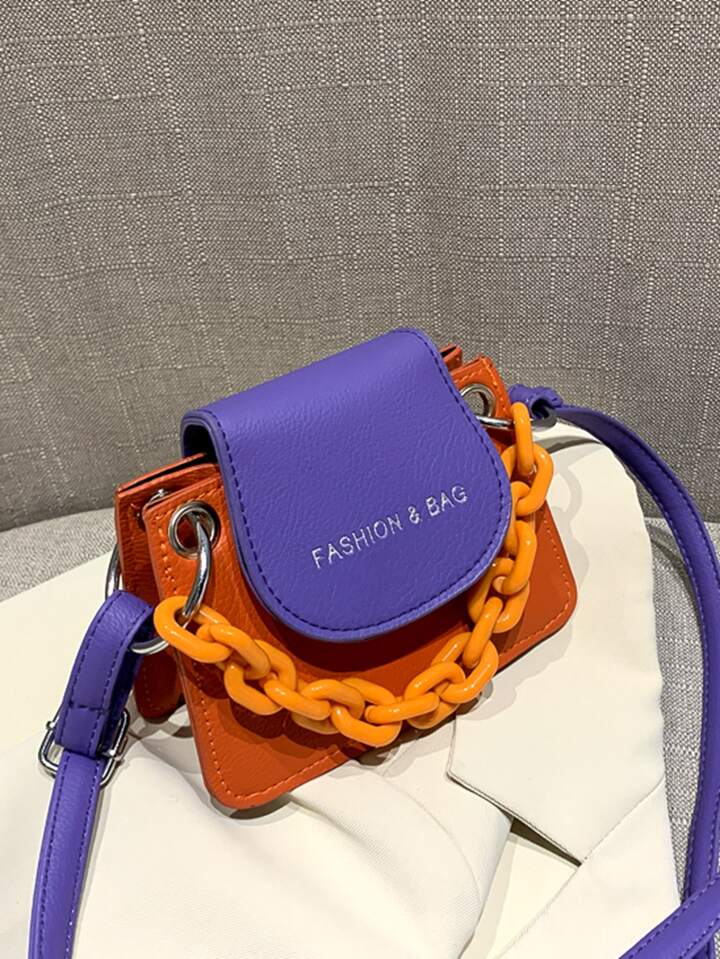 Colorblock Chain Handle Satchel Bag