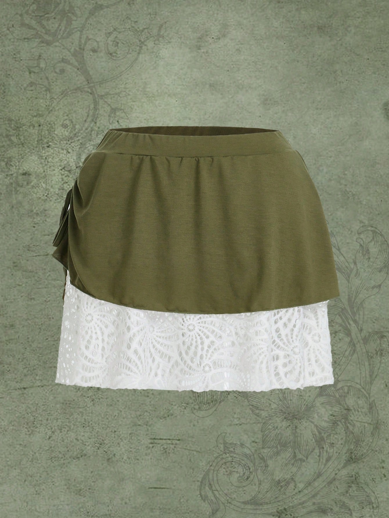 Colorblock Contrast Lace Drawstring Side Skirt