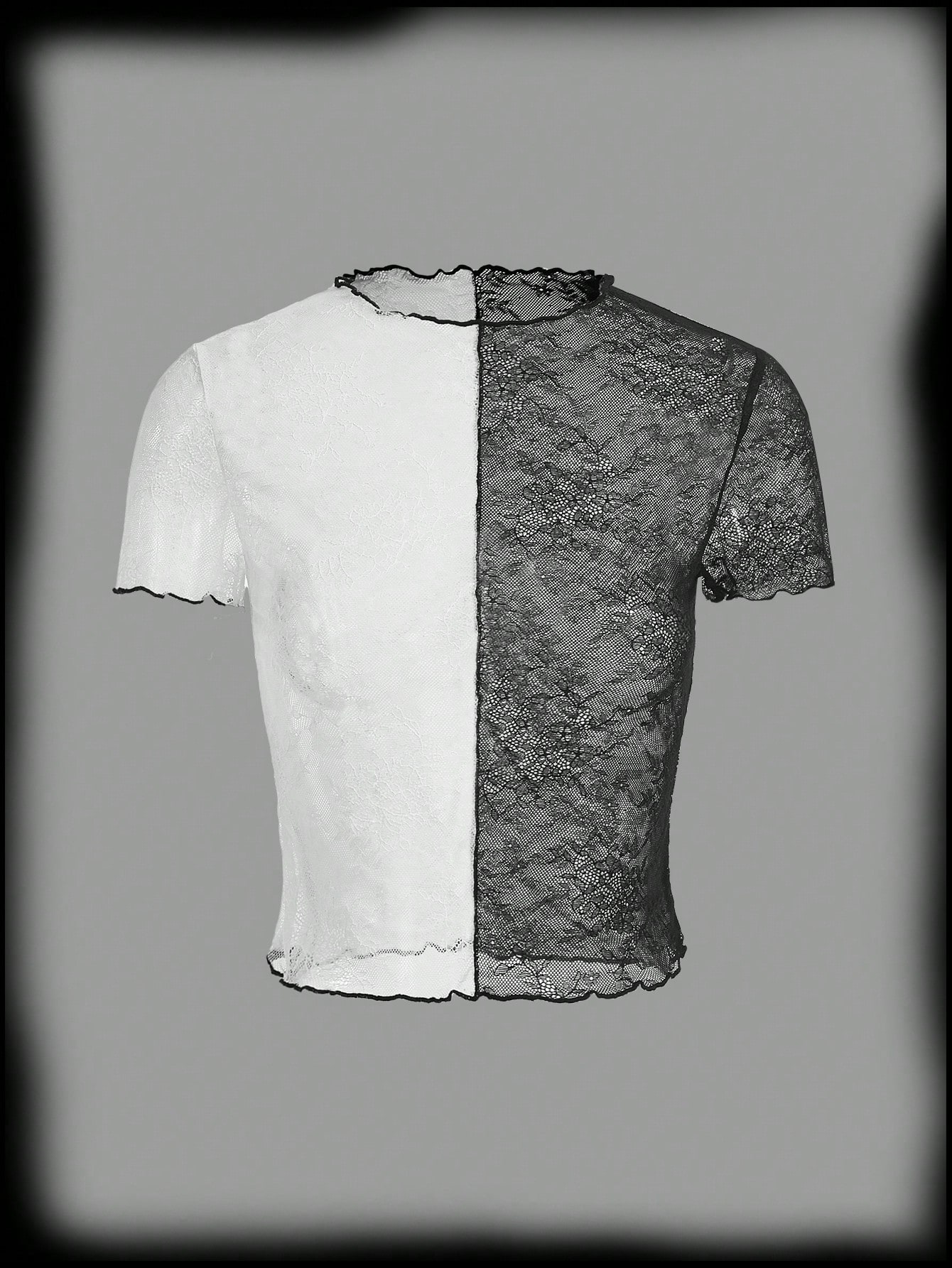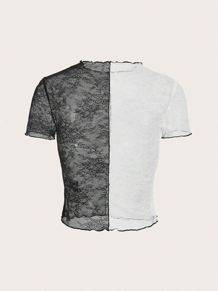 Colorblock Lettuce Trim Crop Lace Top Without Bra