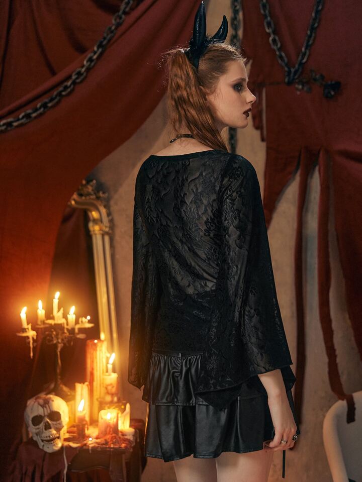 Contrast Floral Lace Tie Front Top