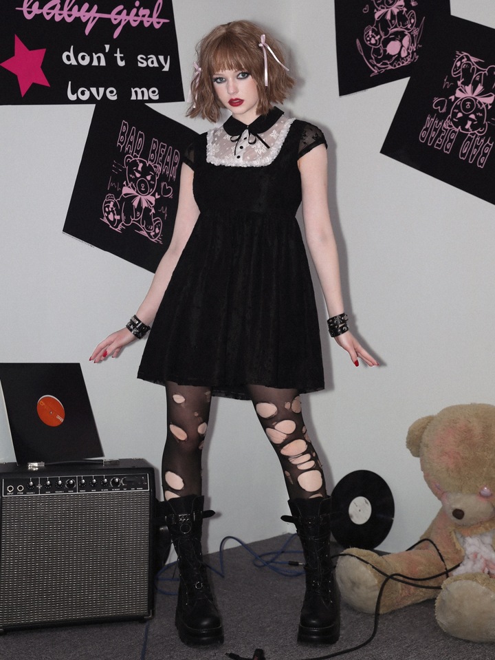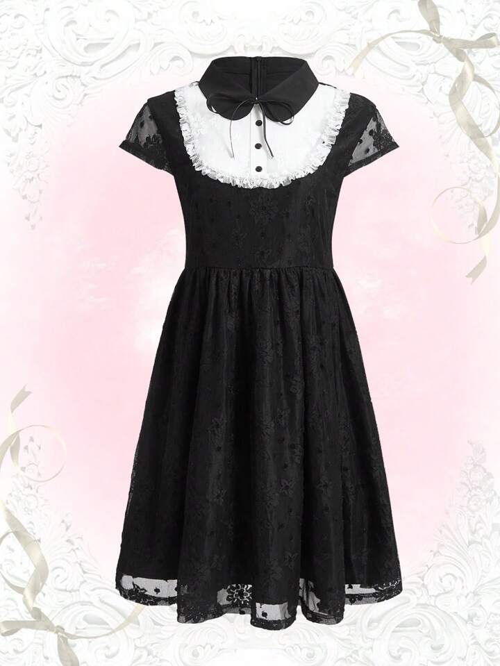 Contrast Lace Button Front Dress Without Belt