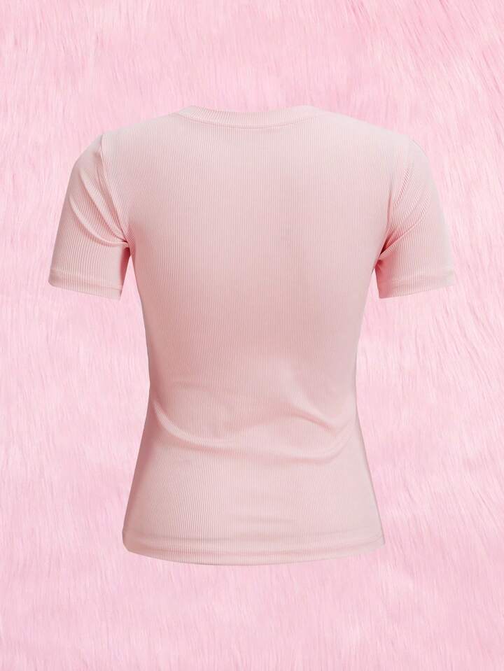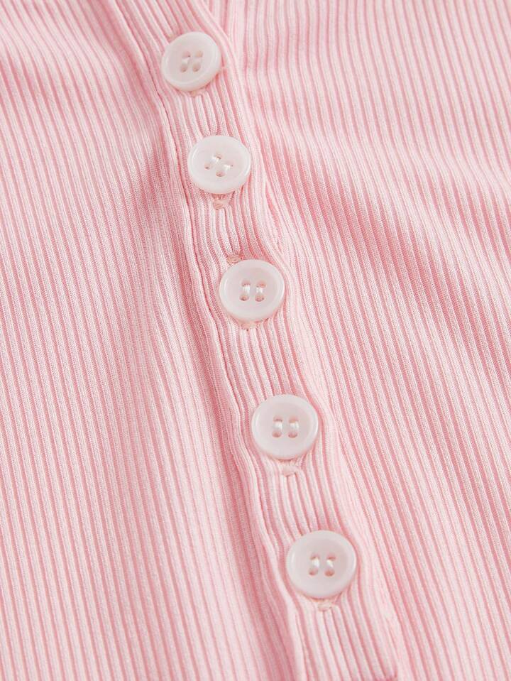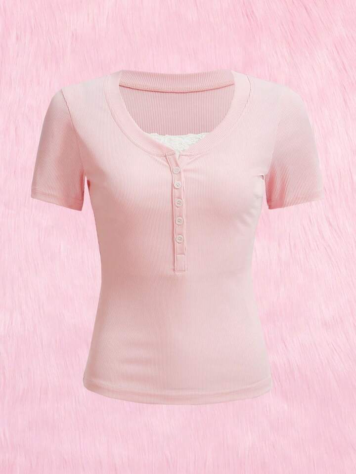 Contrast Lace Half Button Tee